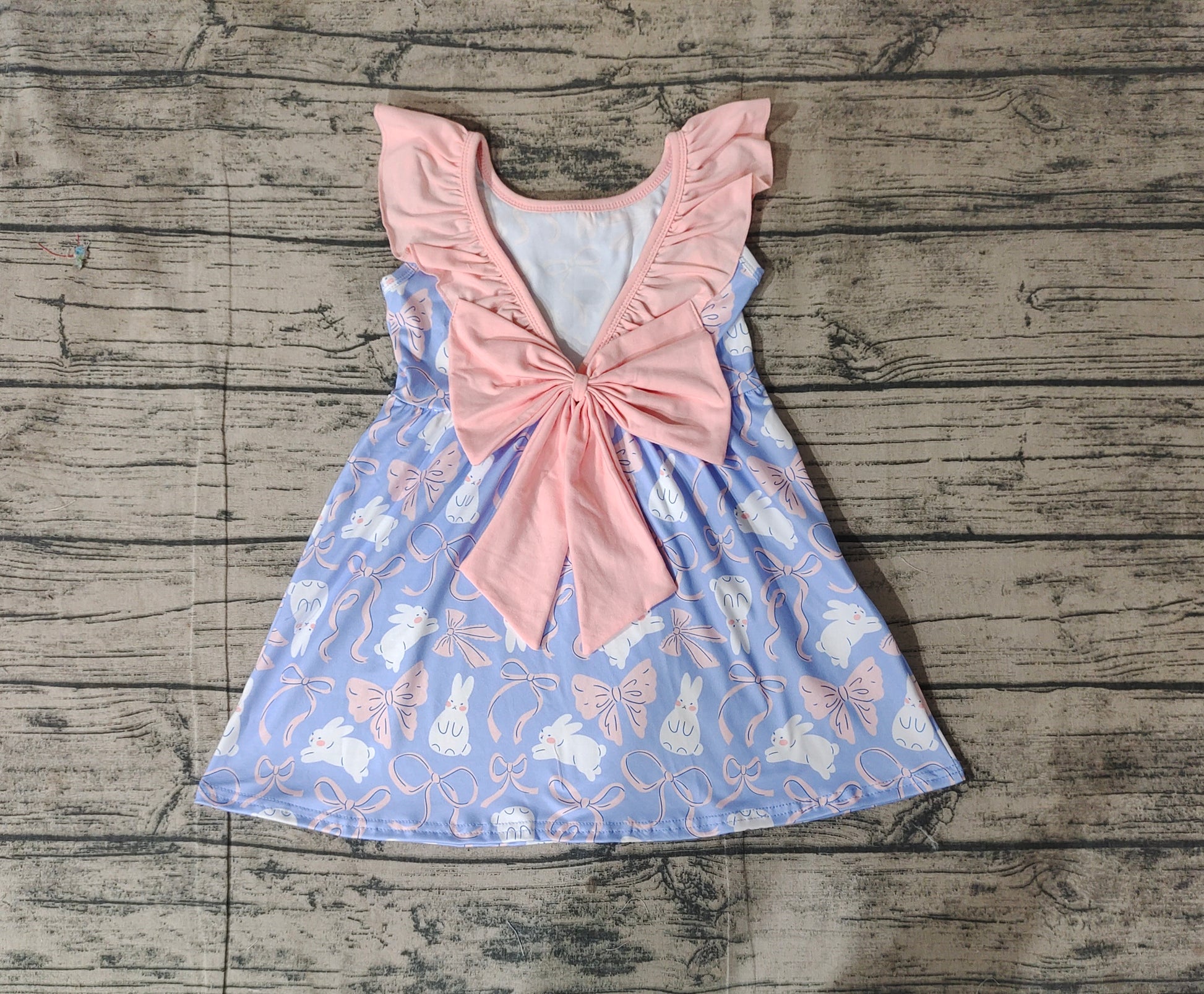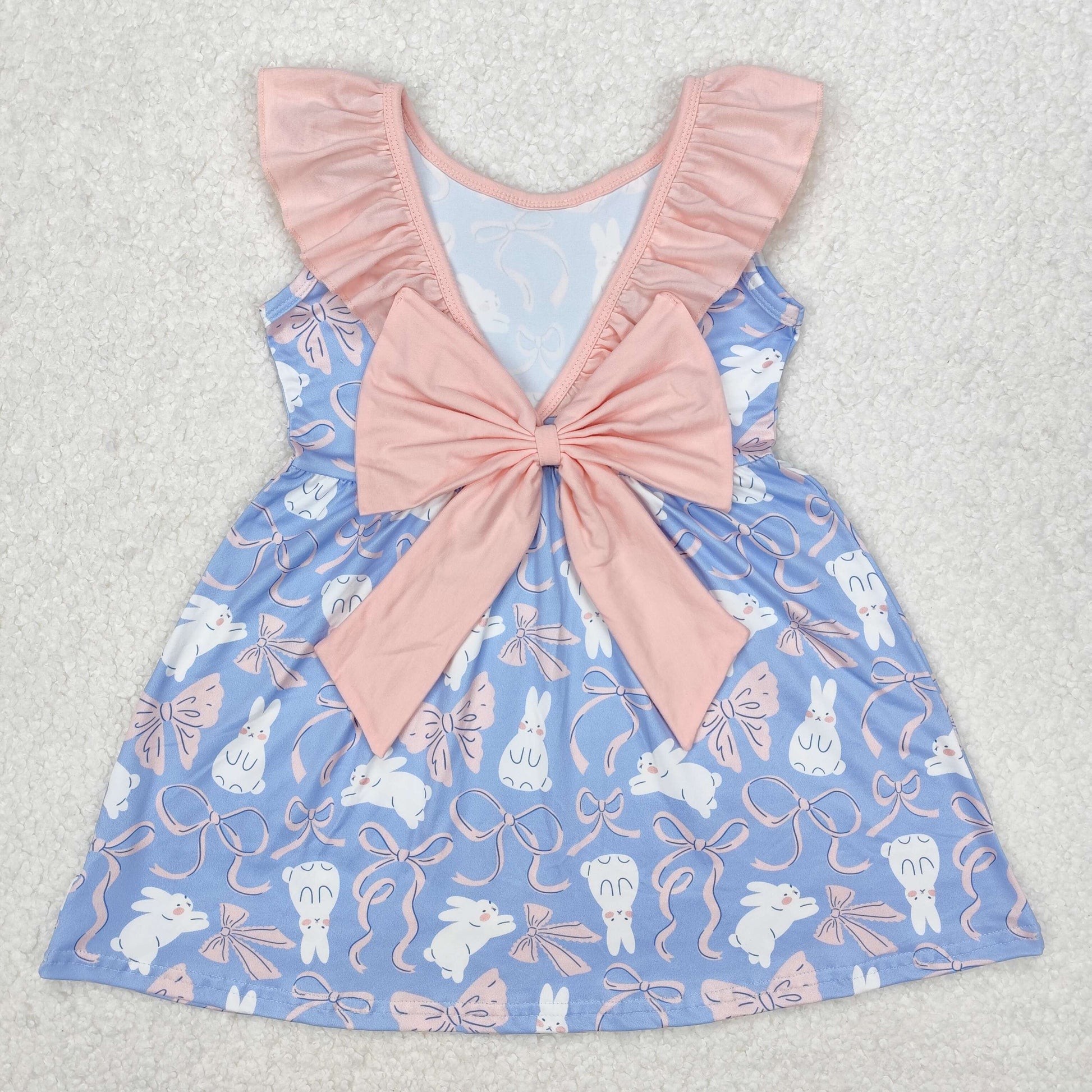 Baby Girl Sleeveless Easter Rabbits Bows Knee Length Dress RTS