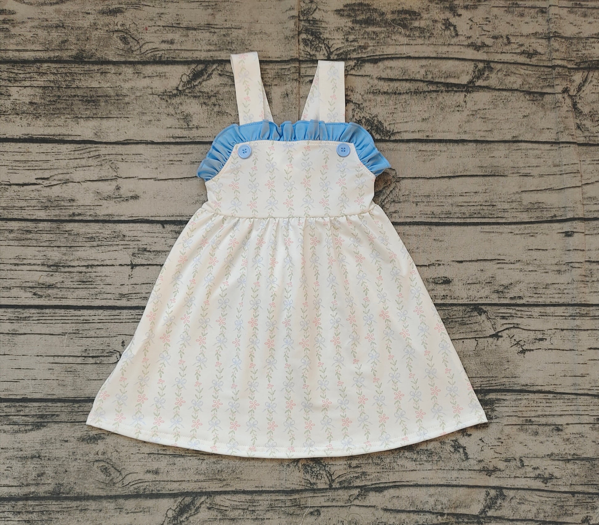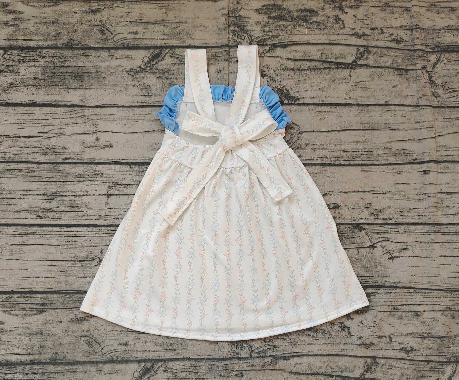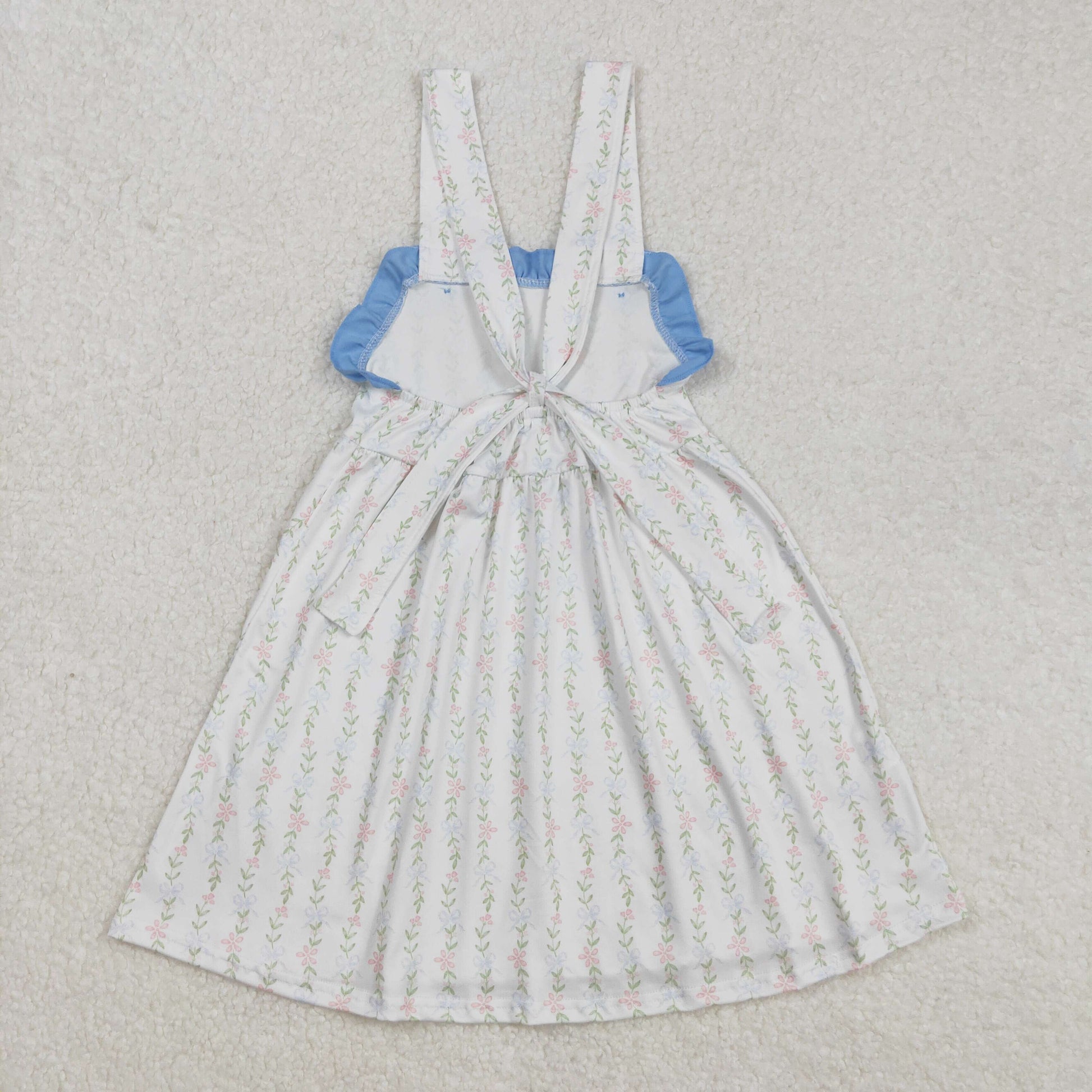 Baby Girl Sleeveless Floral Blue Ruffle Easter Summer Dress RTS