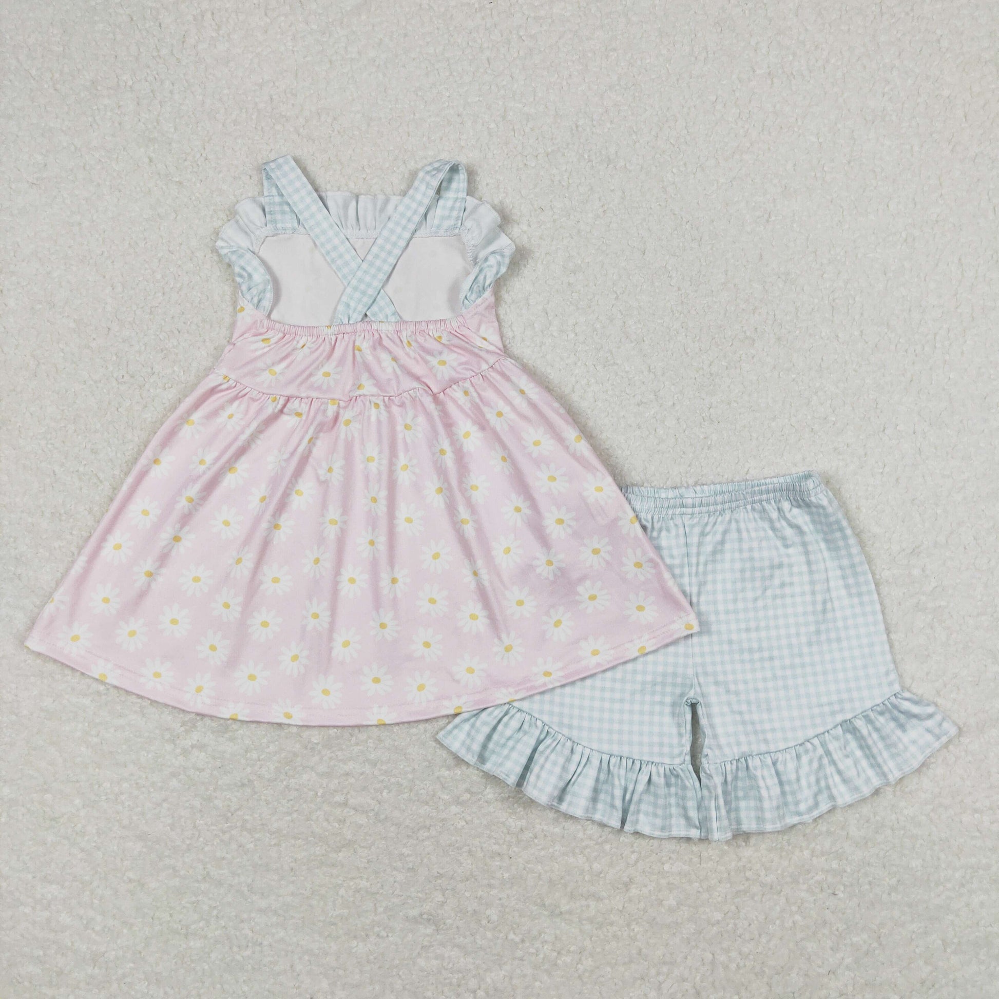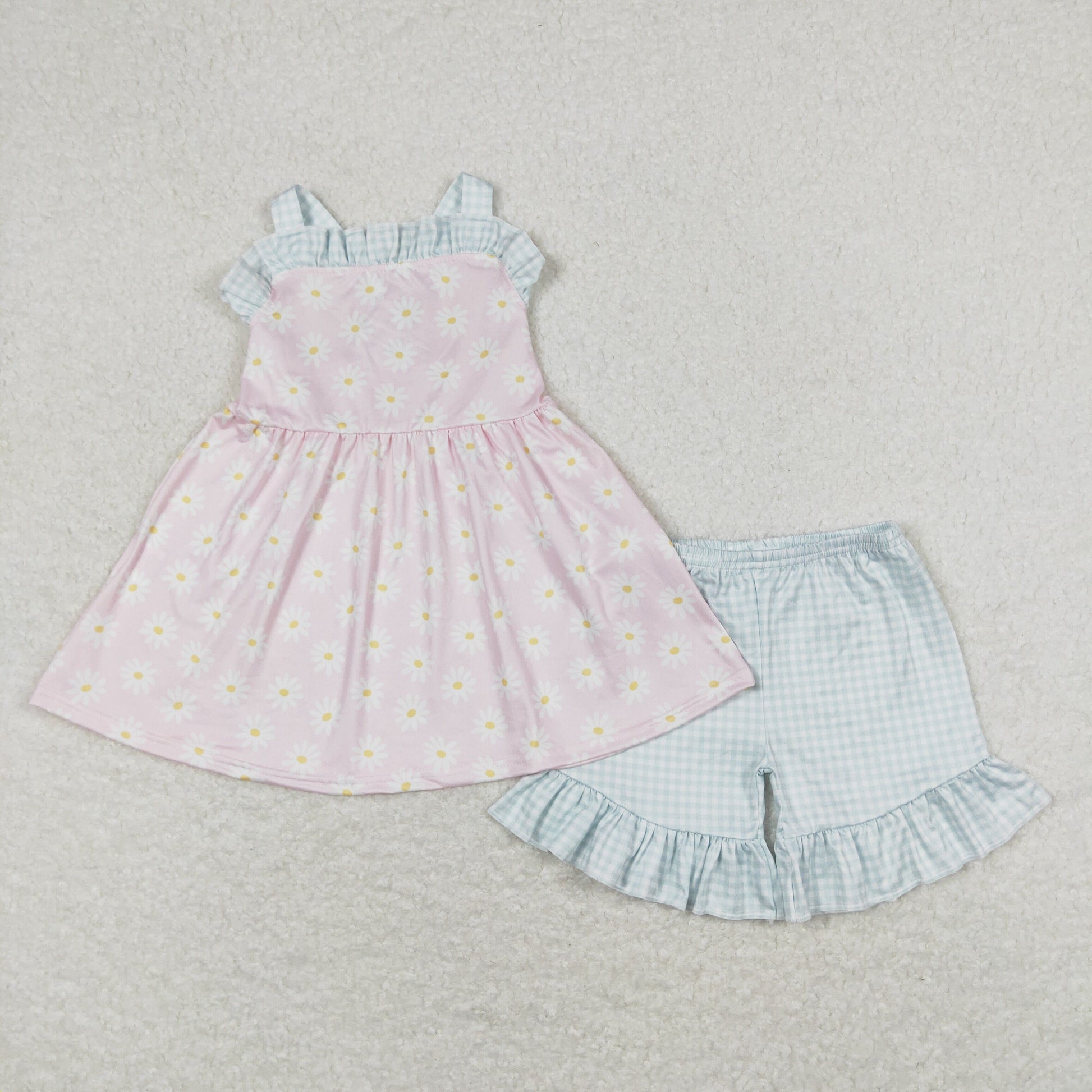 Baby Girl Sleeveless Floral Pink Tunic Plaid Shorts Set