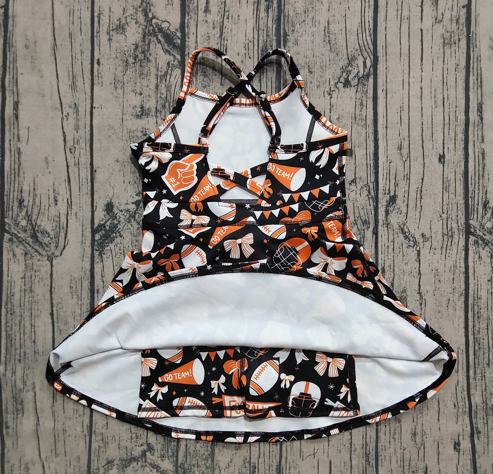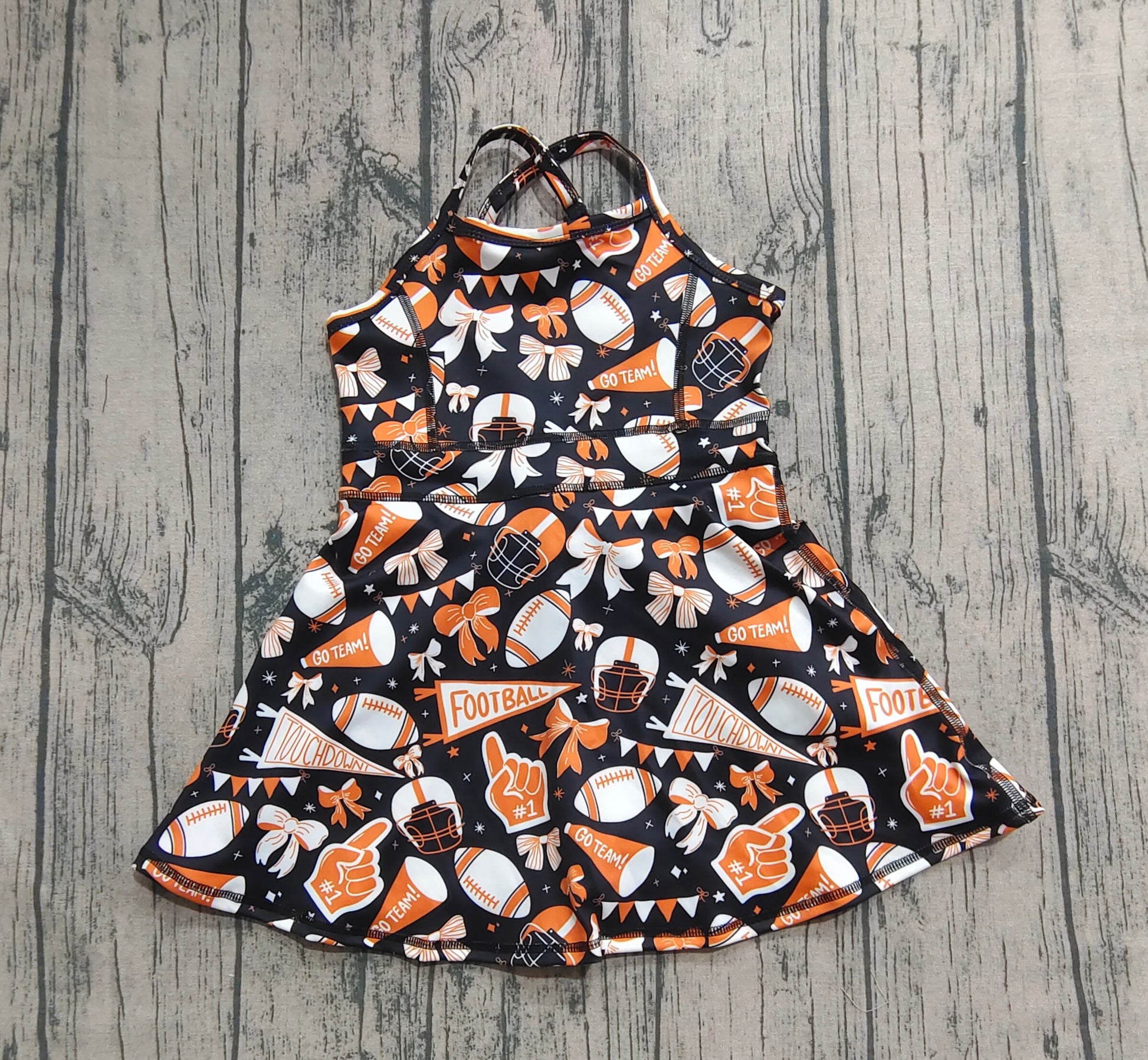 Baby Girl Sleeveless Orange Football Bows Cheer Summer Yoga Active Dress RTS