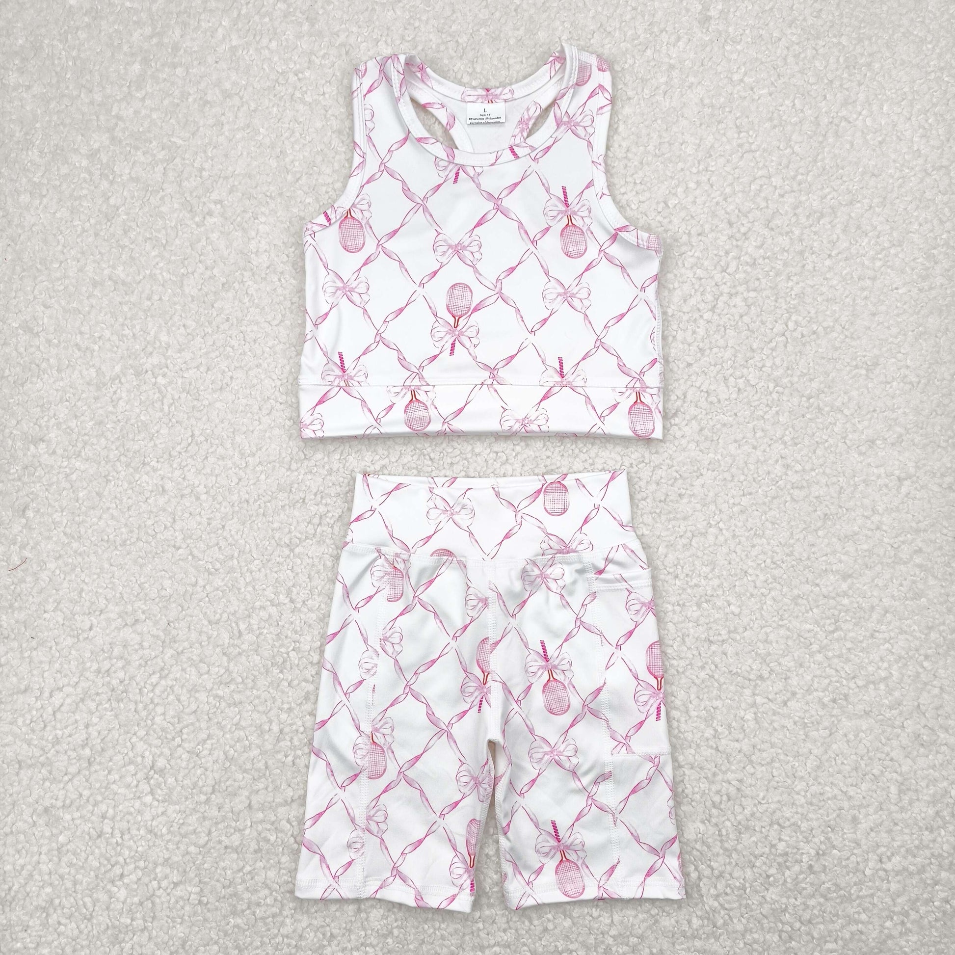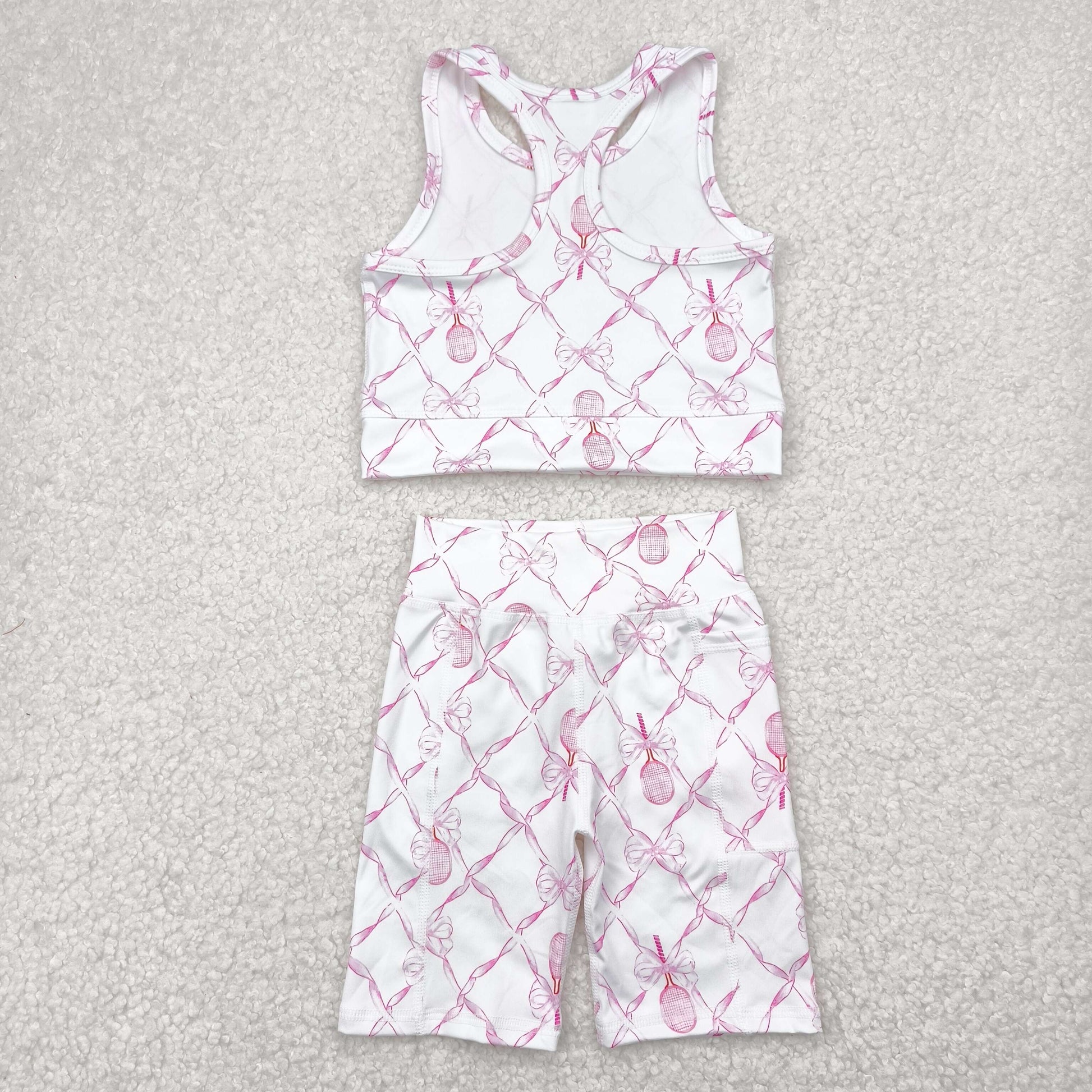 Baby Girl Sleeveless Pink Bow Tops Shorts Yoga Active Wear Clothes Set RTS