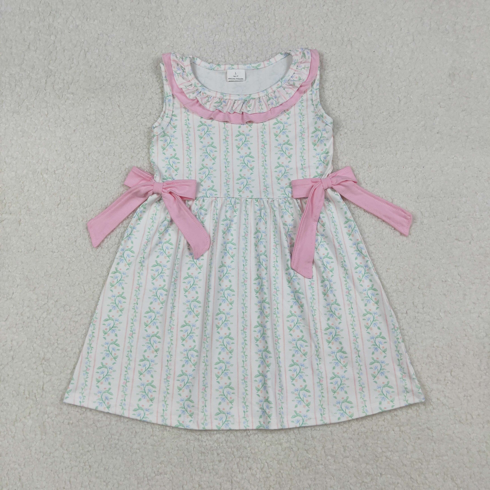Baby Girl Sleeveless Pink Bows Floral Knee Length Dress RTS