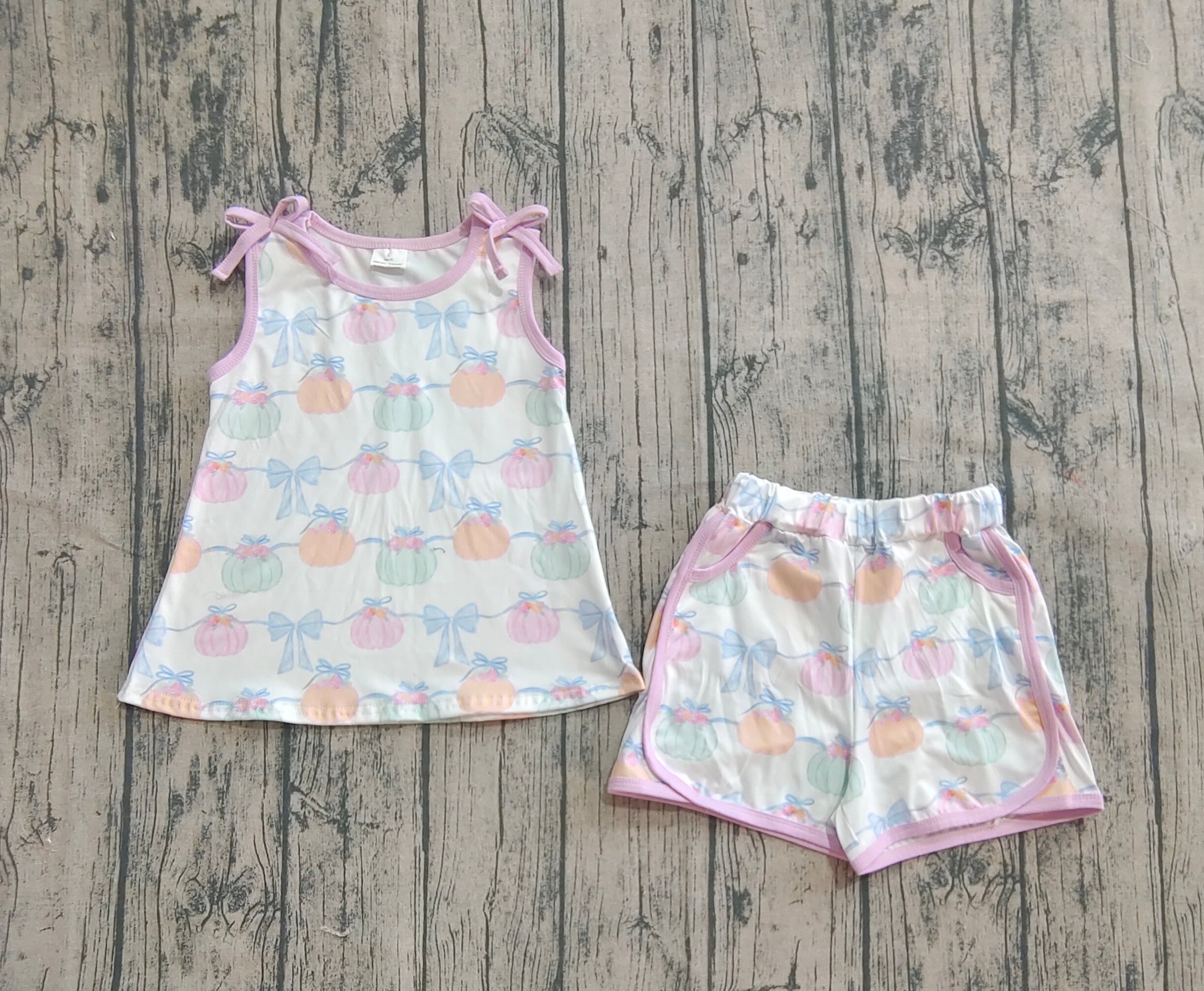 Baby Girl Sleeveless Pumpkin Bows Tunic Pockets Shorts Falll Set RTS