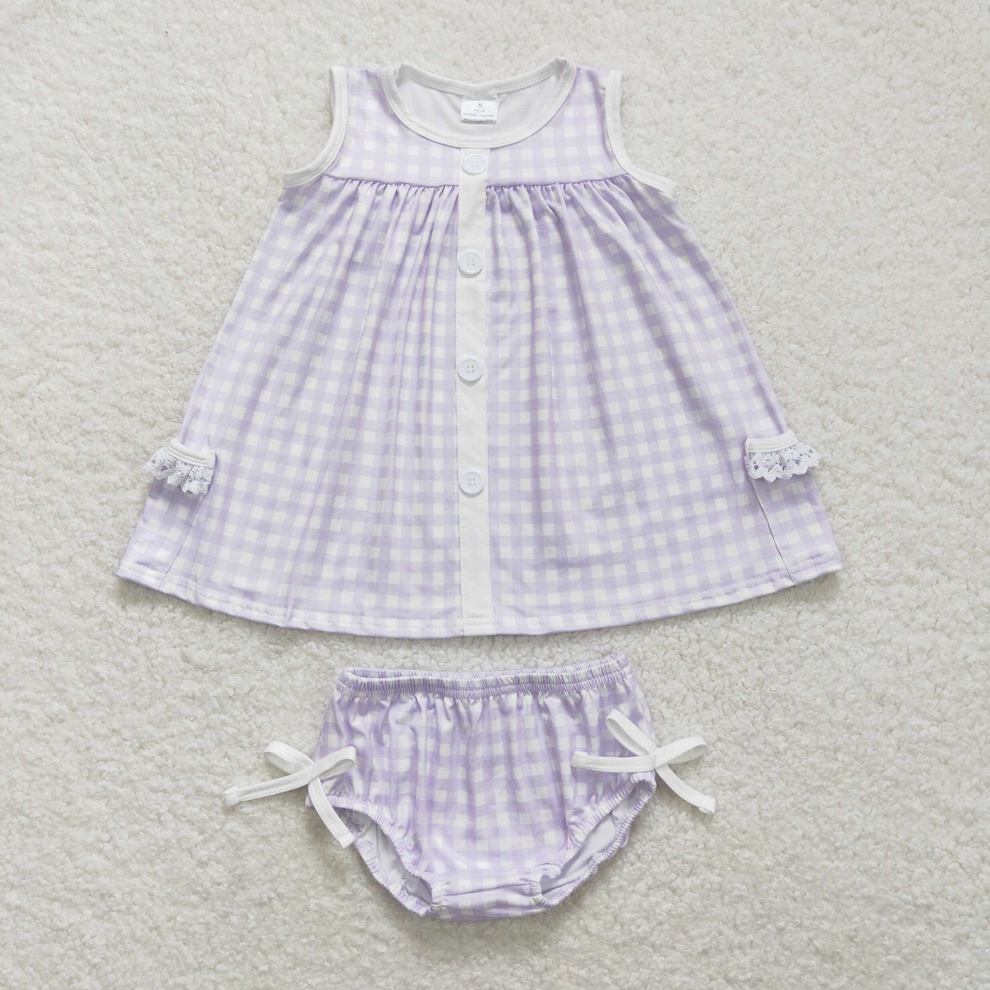 Baby Girl Sleeveless Purple Plaid Pocket Tunic Bummies Shorts Set