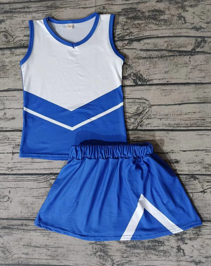 Baby Girl Sleeveless Shirt Blue Skirt Team Outfit Moq 5
