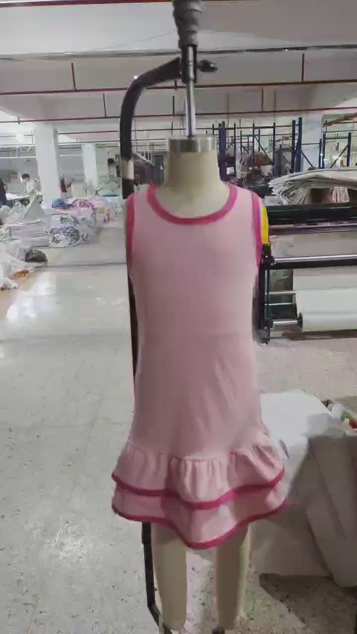 Baby Girl Sleeveless Yoga Active Pink Ruffle Knee Length Dress RTS