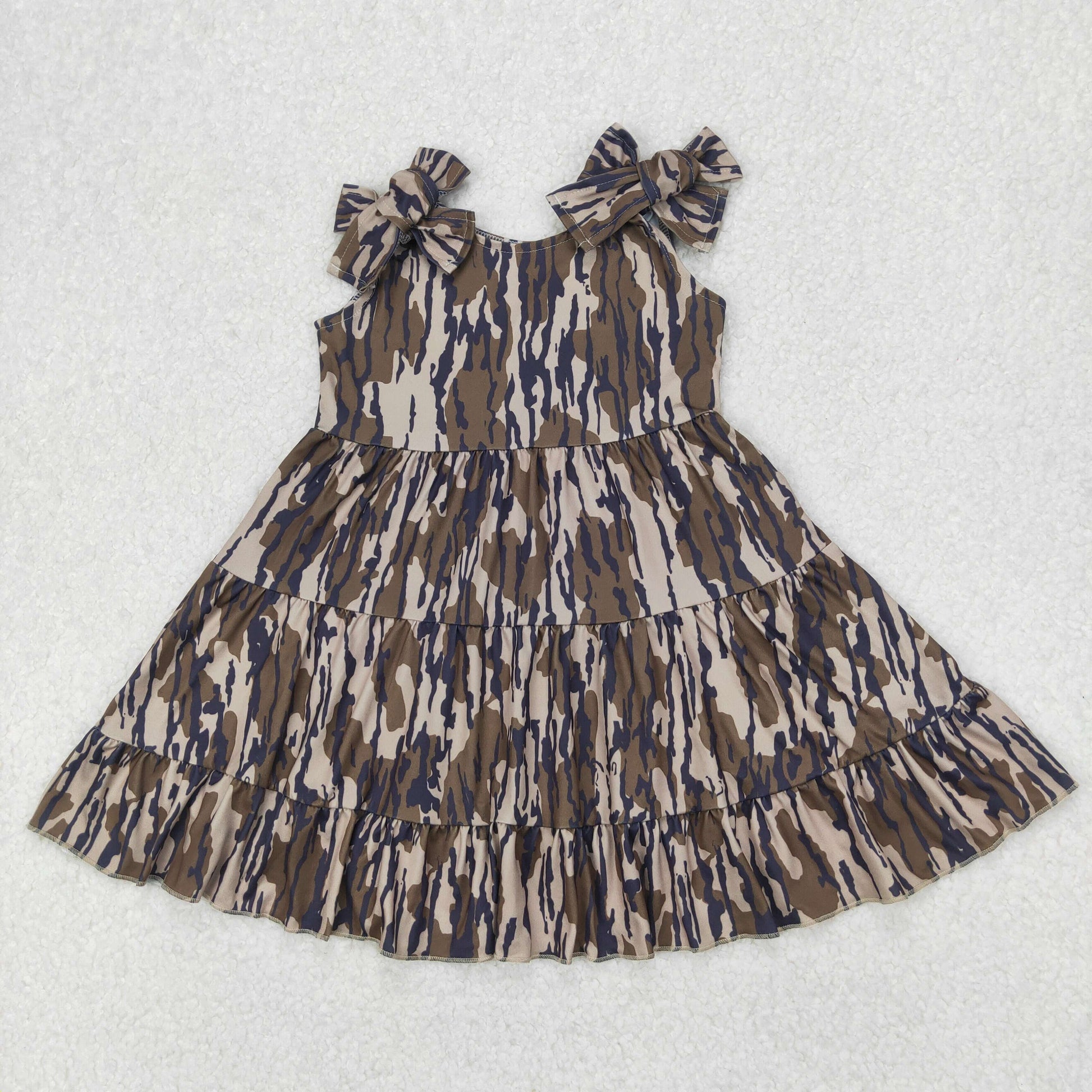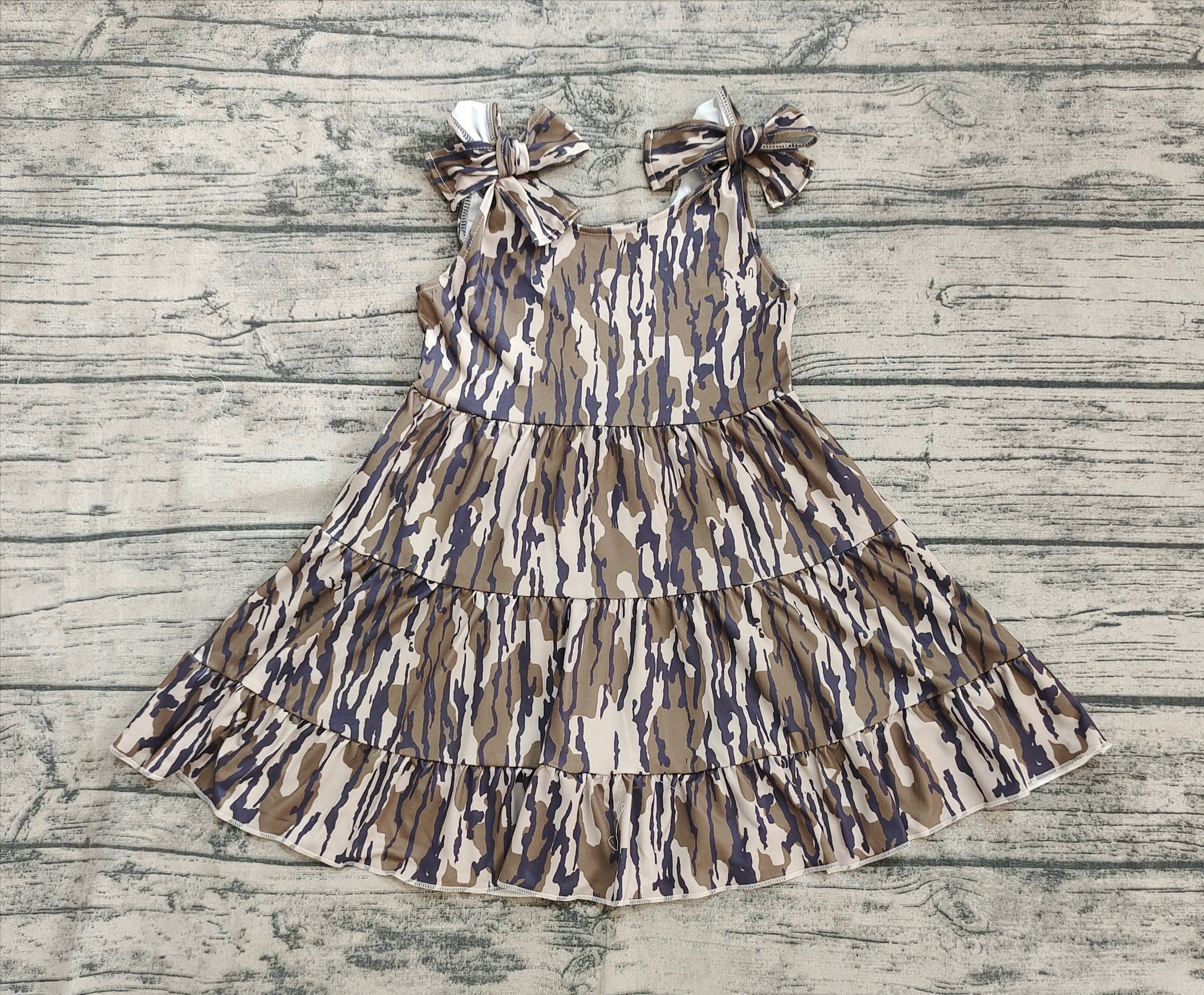 Baby Girl Straps Bows Camo Summer Knee Length Dress RTS