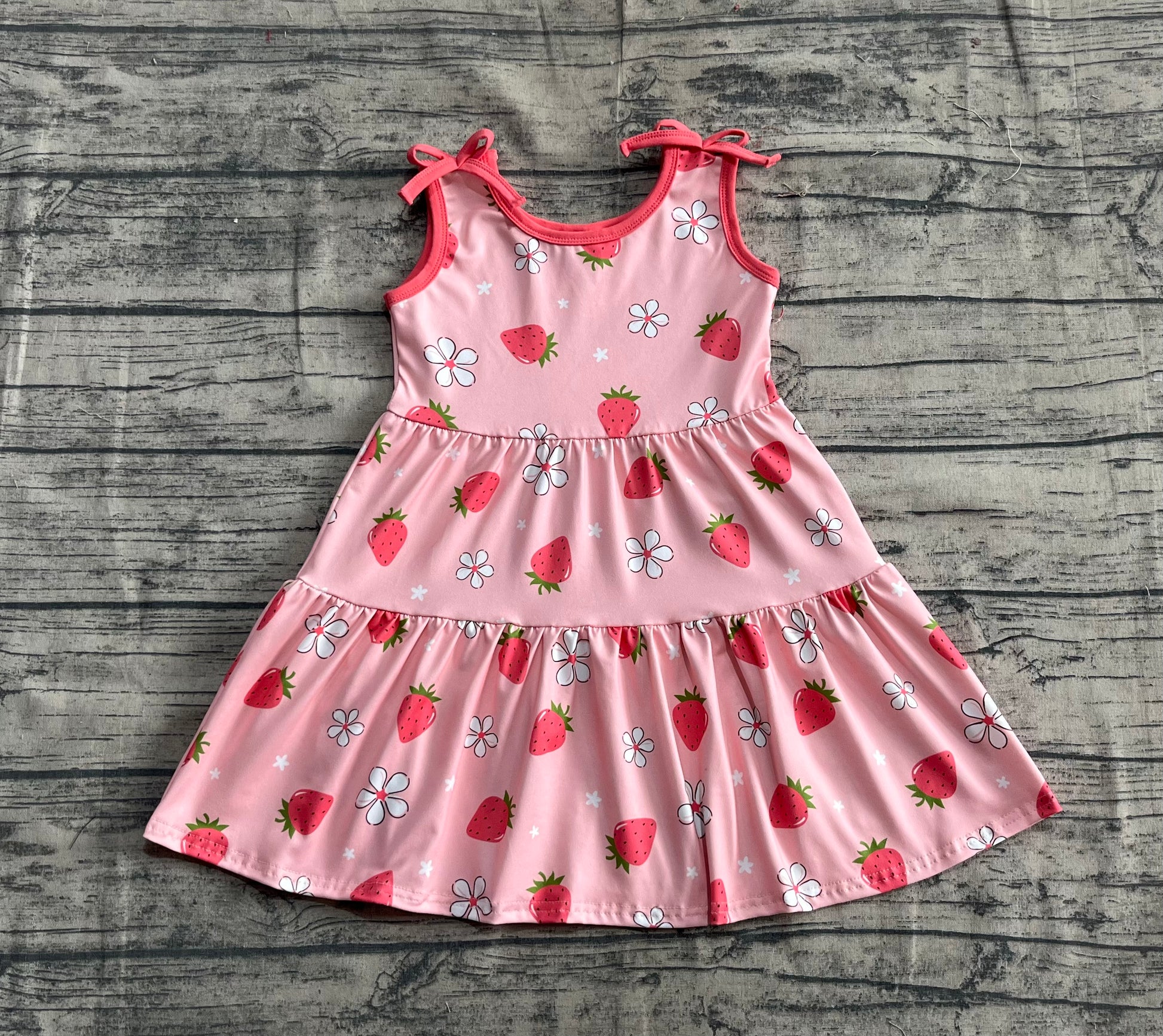 Baby Girl Straps Bows Strawberry Flower Knee Length Dress RTS