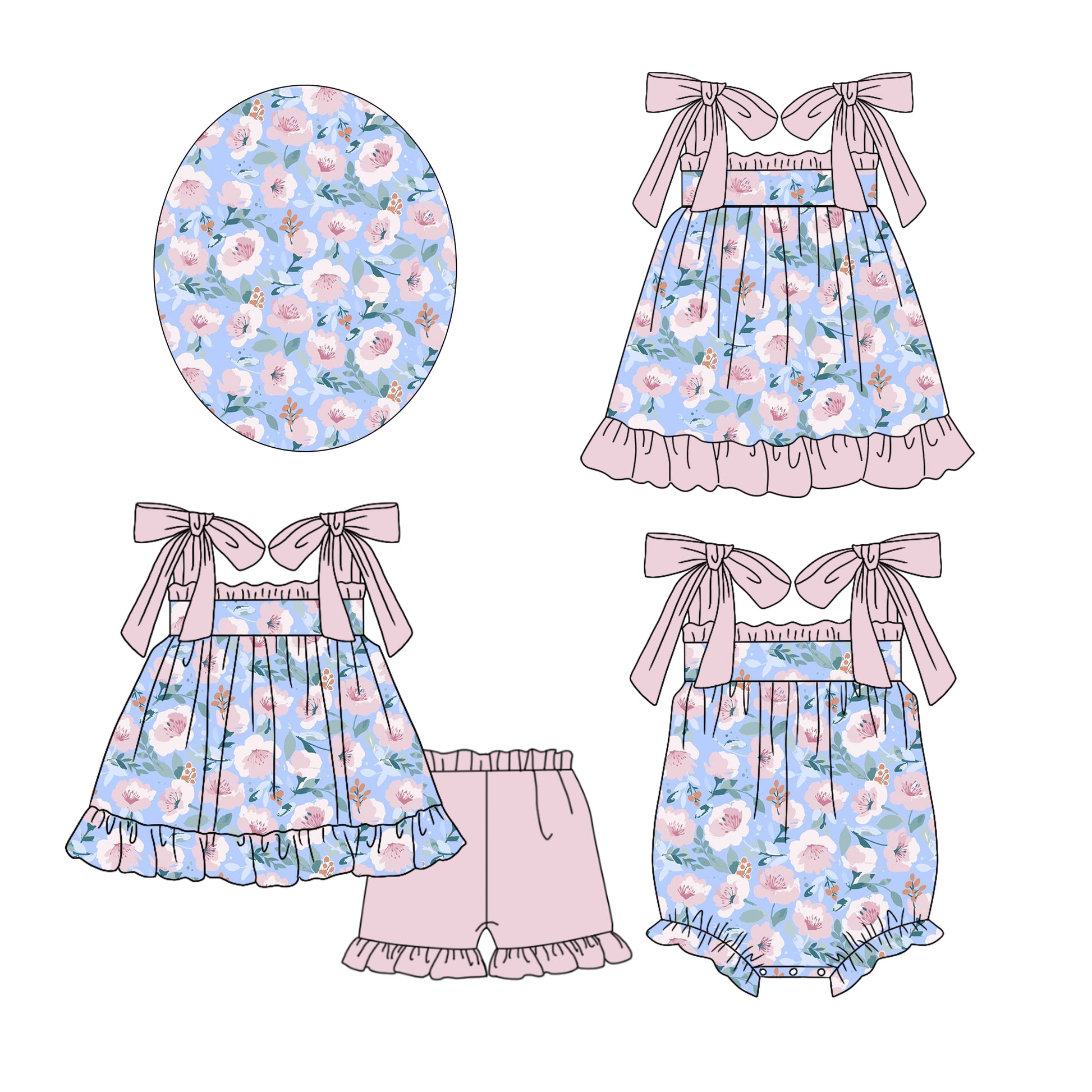 Baby Girl Straps Flower Sibling Summer Romper Dress Clothes Set ( Moq 5 Each Design )11.25