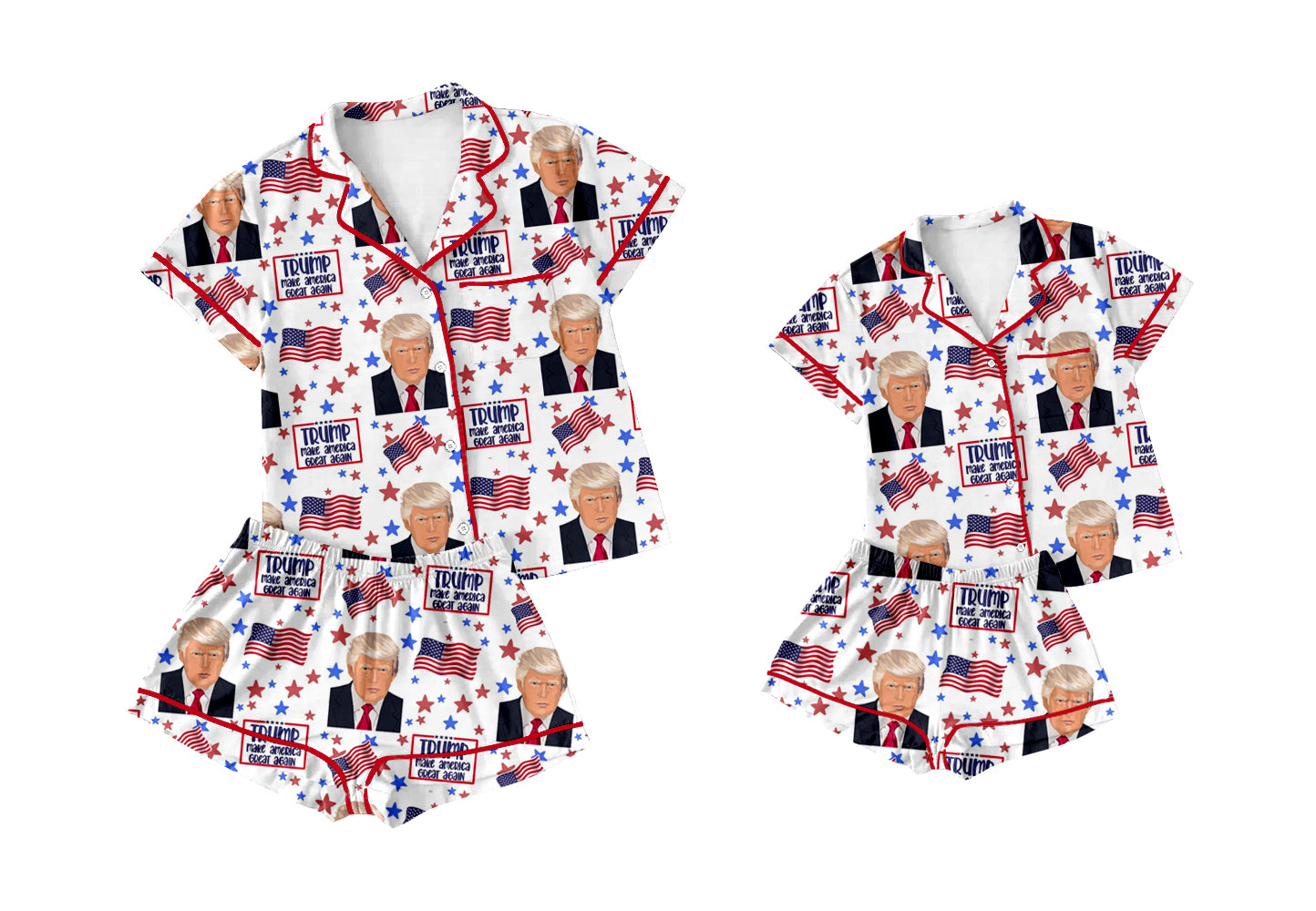 Baby Girl Toddler Adult Women Flags Short Sleeves Shorts Sibling Family Shorts Pajamas Set ( Moq 5 Each Style )11.26