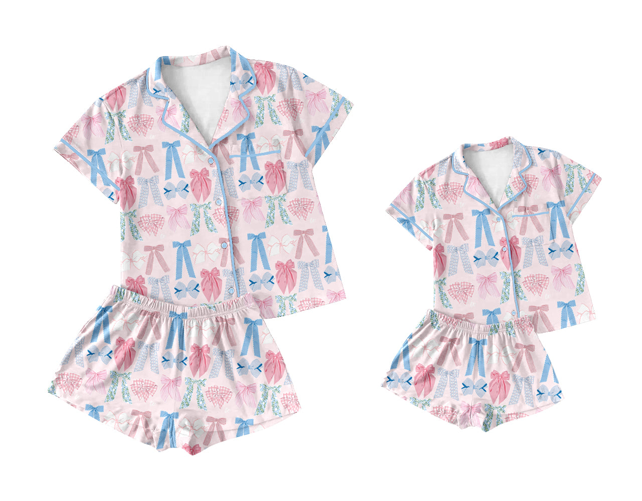 Baby Girl Toddler Adult Women Short Sleeves Colorful Bows Shorts Sibling Family Shorts Pajamas Set ( Moq 5 Each Style ) 12.6