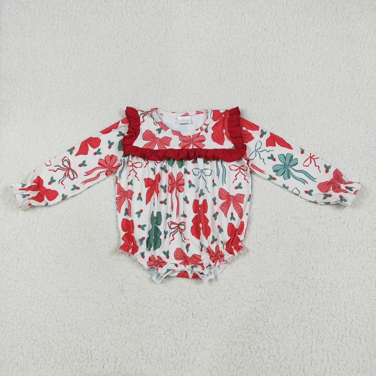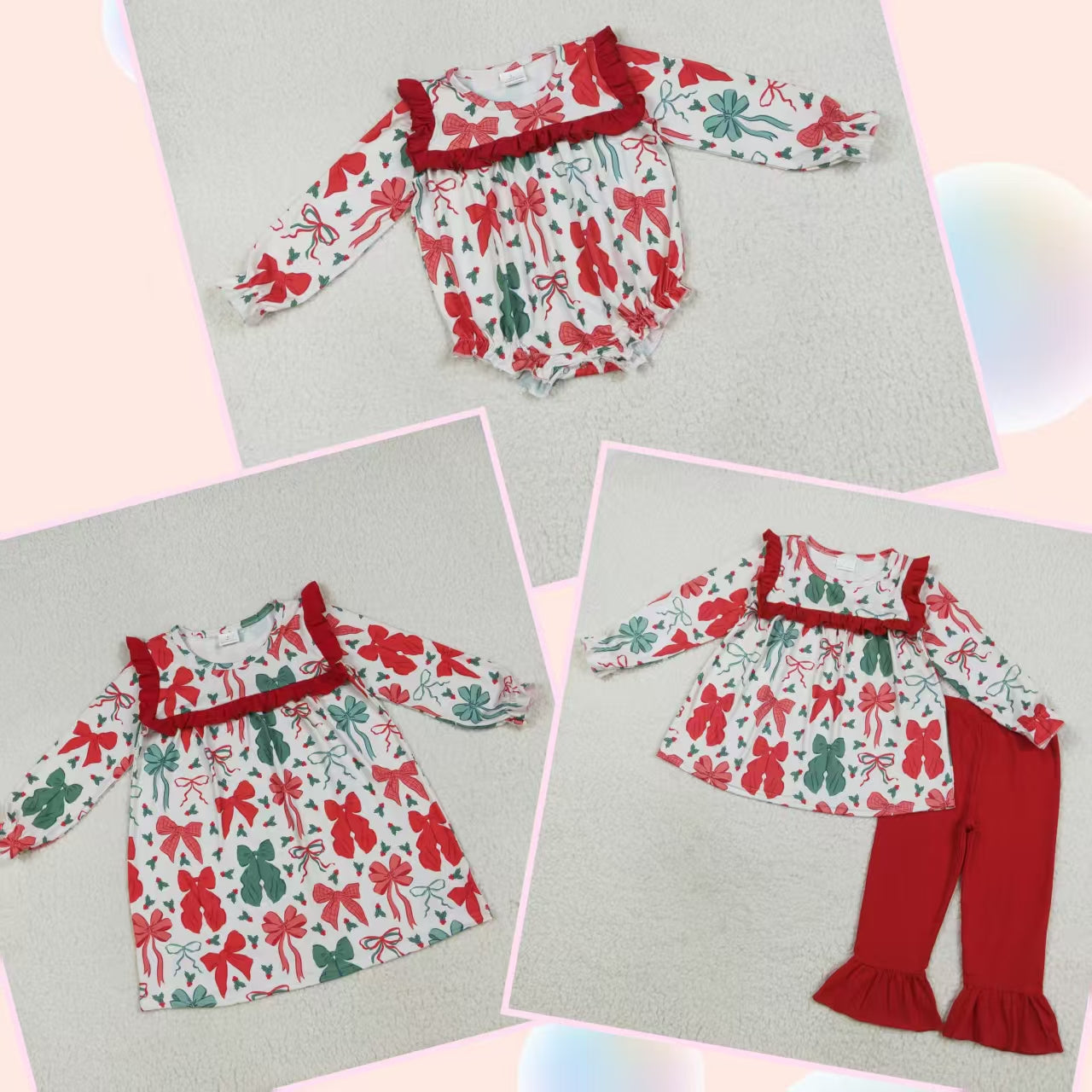 Baby Girl Toddler Long Sleeves Christmas Bows Sibling Red Ruffle Romper Dress Set RTS
