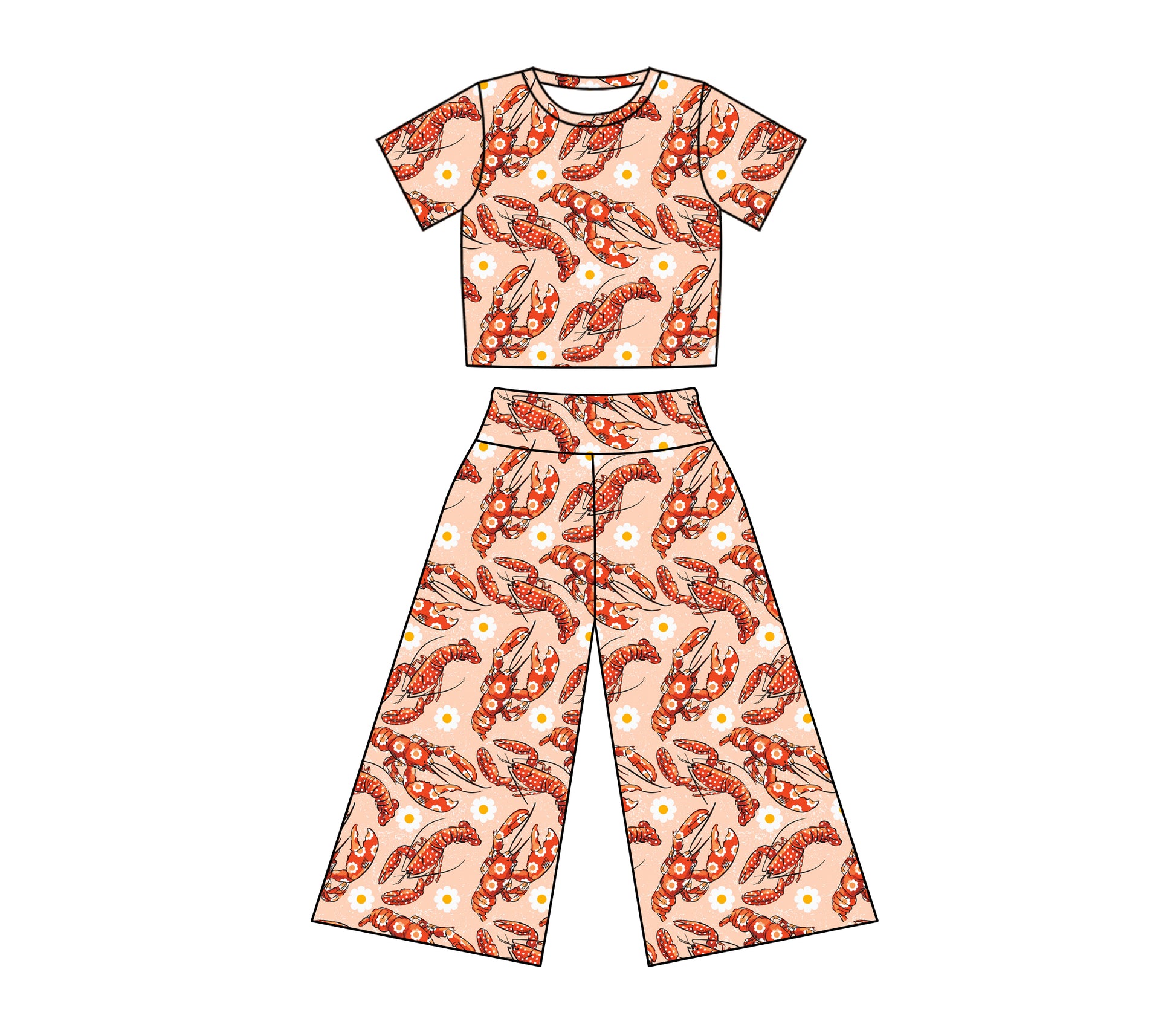 Baby Girl Toddler Short Sleeves Flower Crawfish Shirt Pants Clothes Set Moq 5 (11.30)