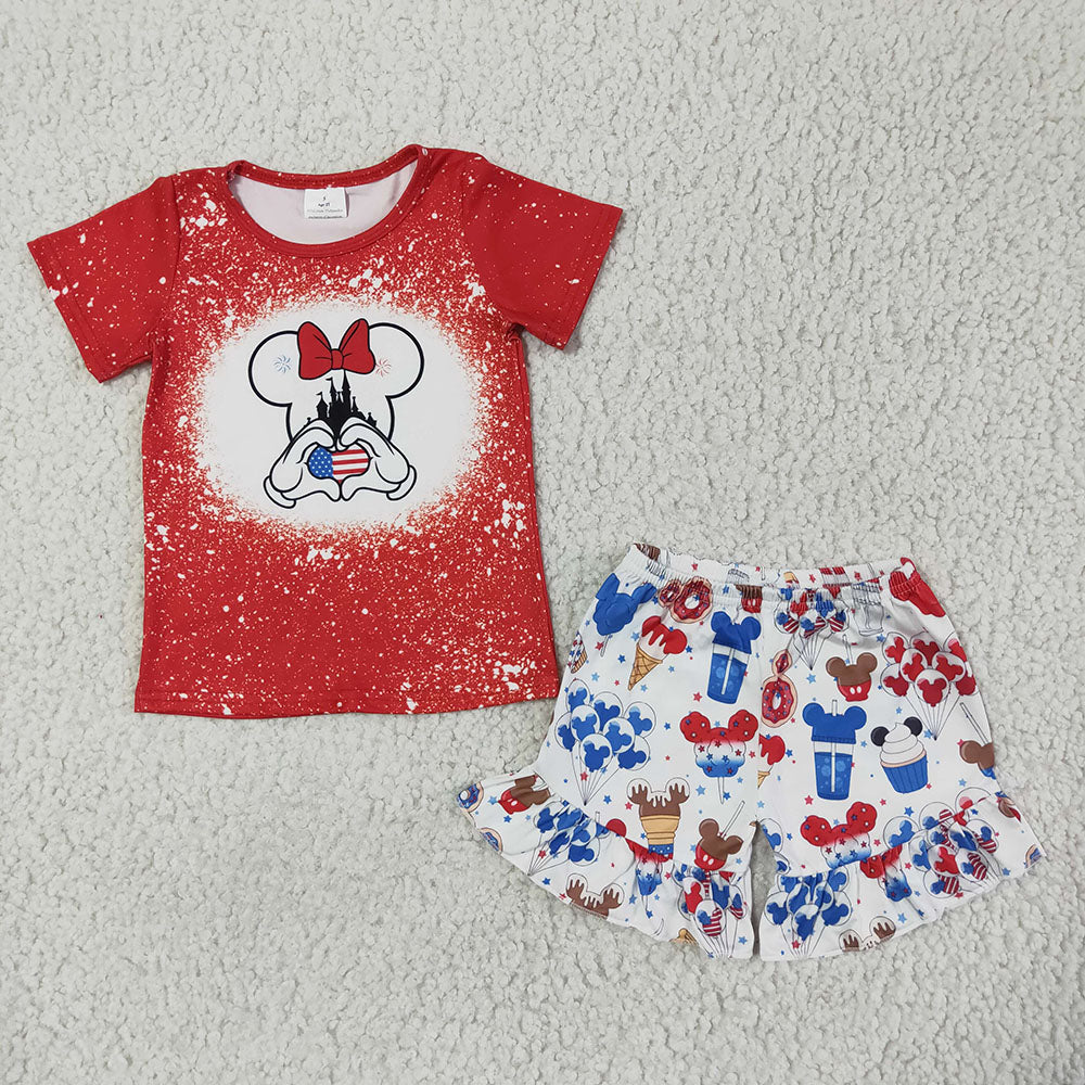 Promotion Baby Girls 4th of July Castle Shorts Set