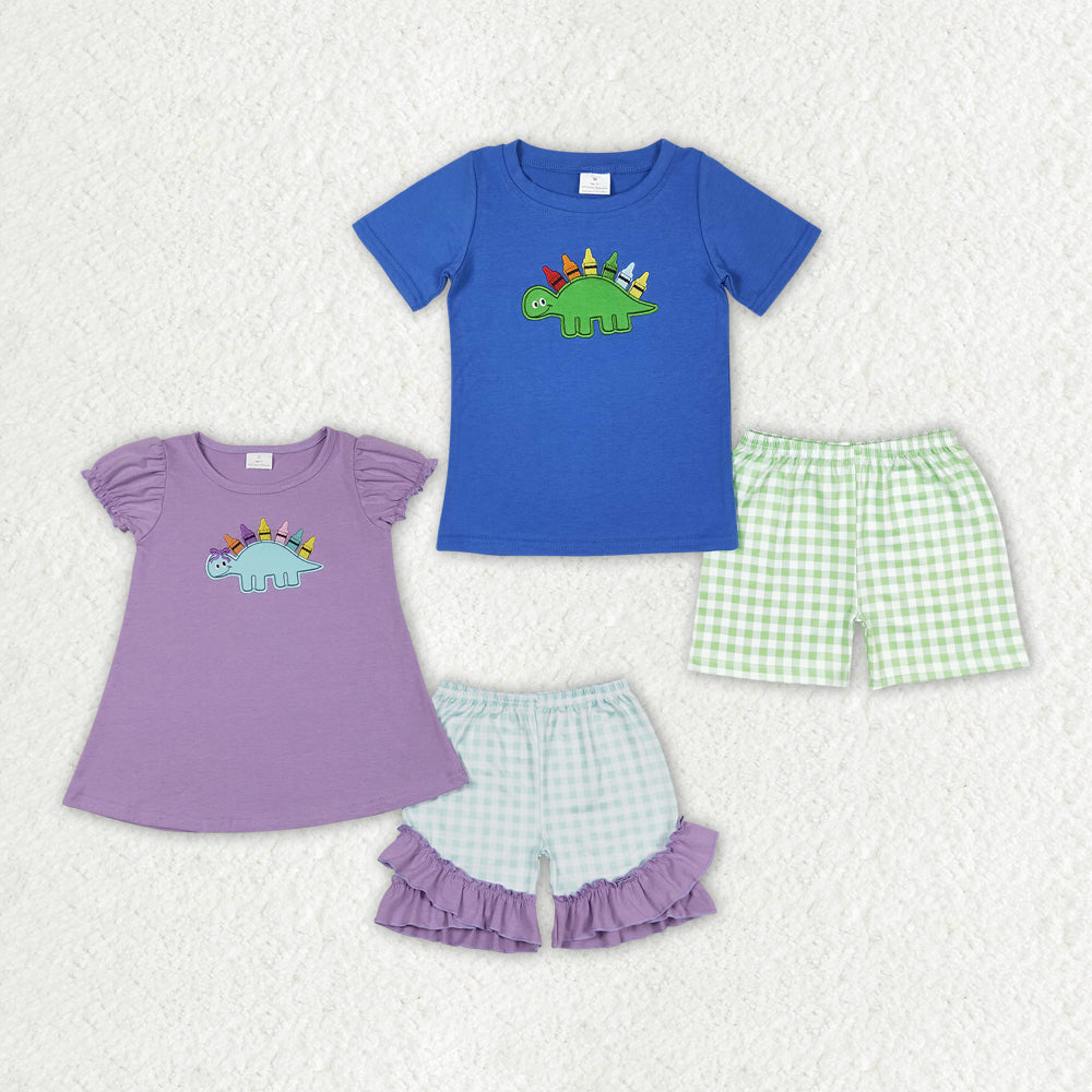 Baby Boy Girl Embroidery Dinosaurs Back To School Sibling Set