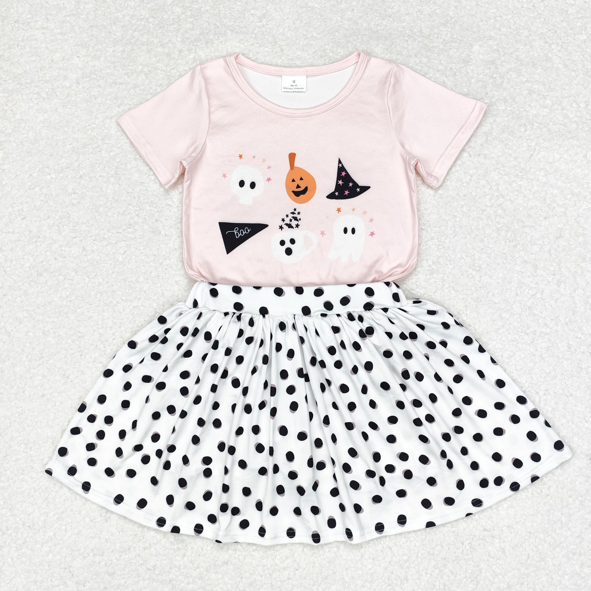 Baby Girl Halloween Short Sleeves Pumpkin Shirt Skirt With Shorts Set