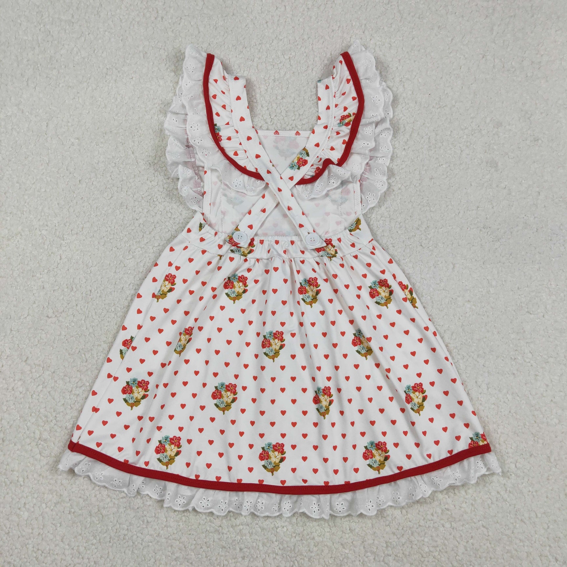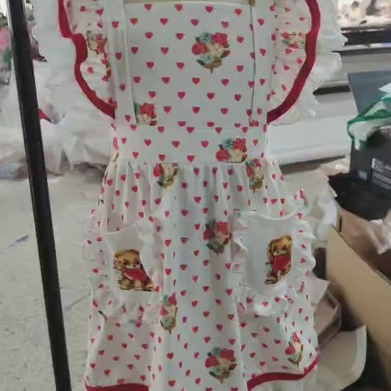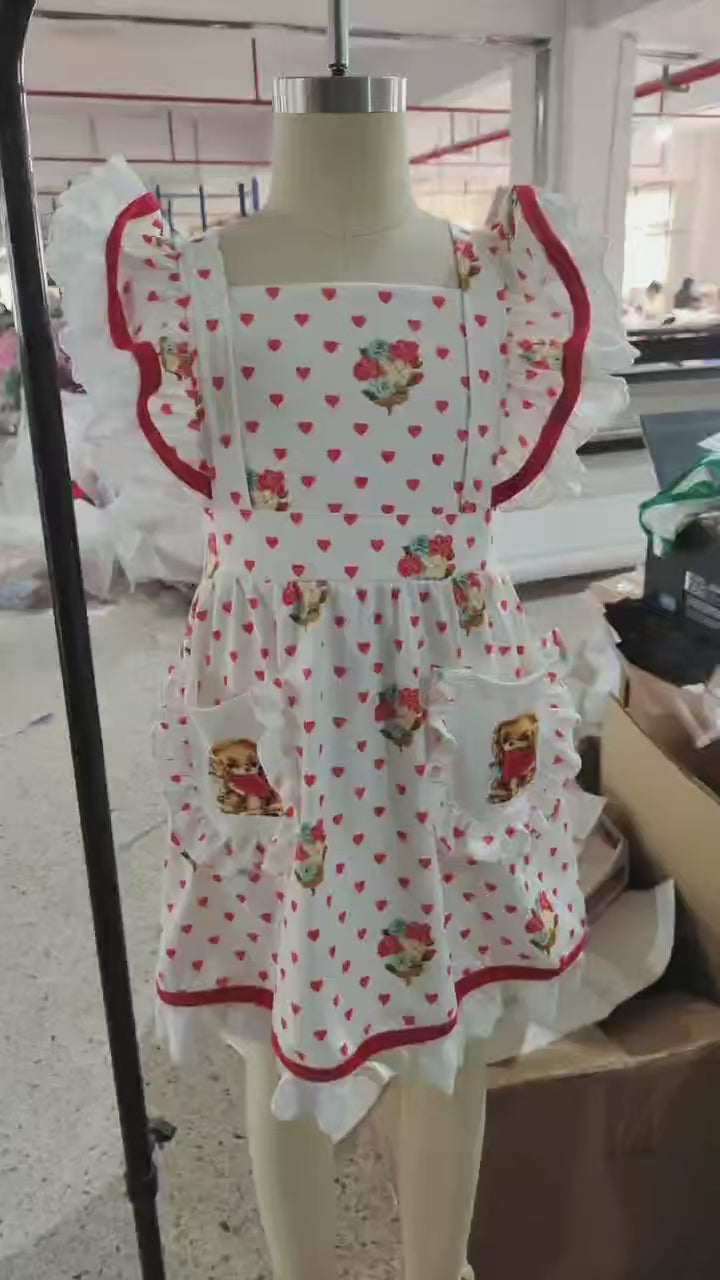 Baby Girls Hearts Flower Valentine Dogs Pockets Knee length Dress RTS