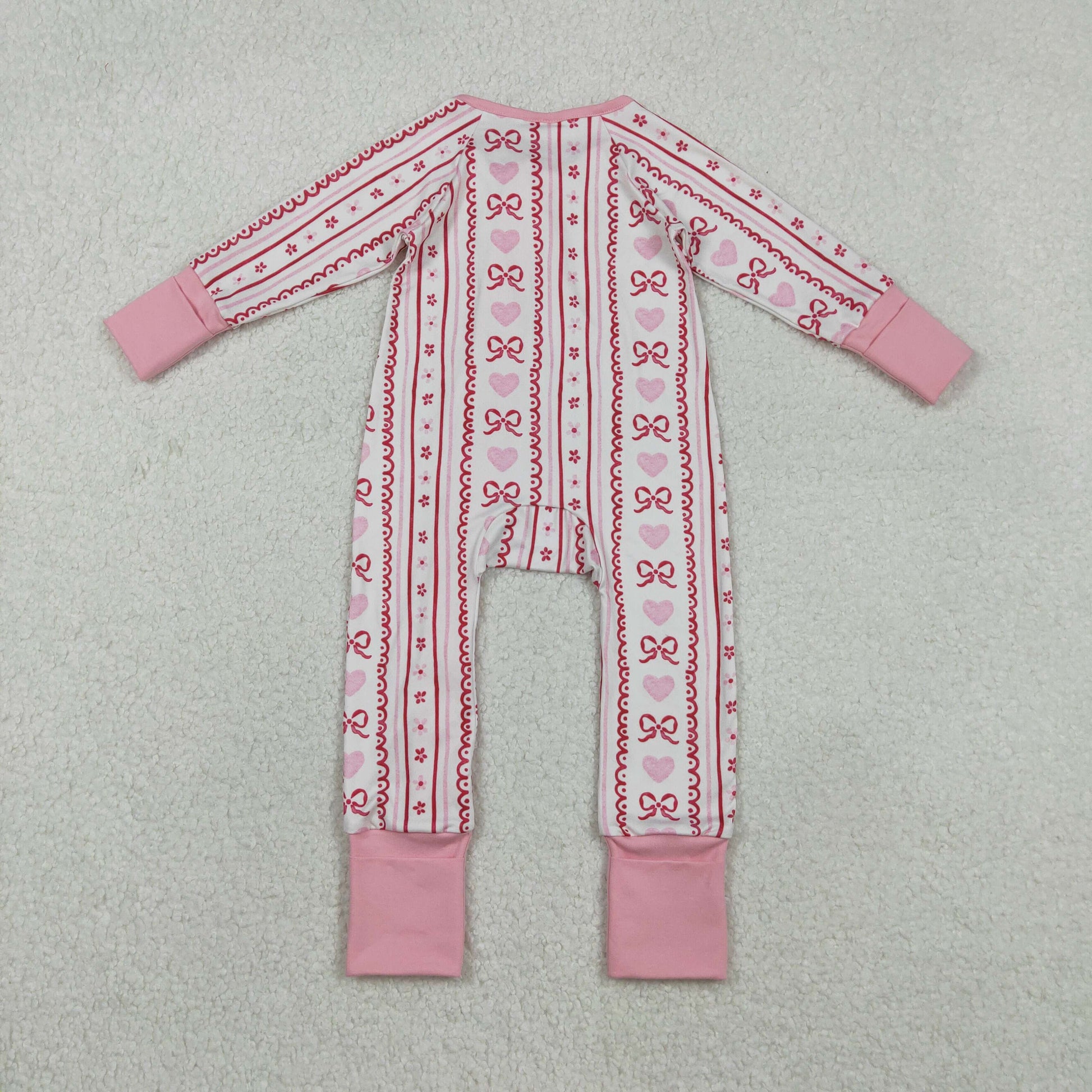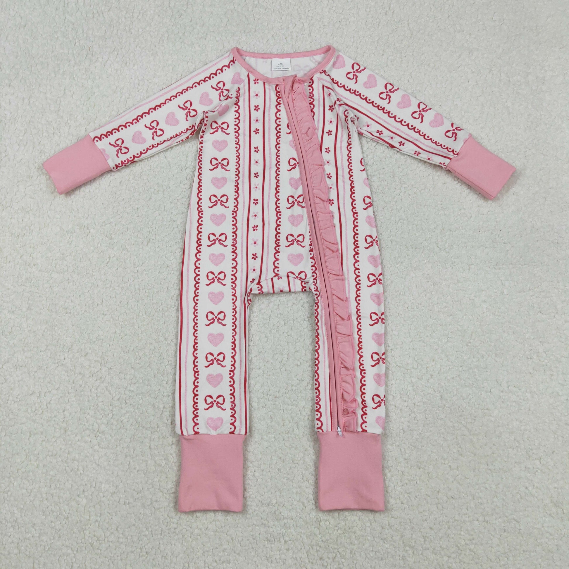 Baby Girls Infant Long Sleeves Hearts Bows Floral Valentine Zipper Sleeper Romper RTS