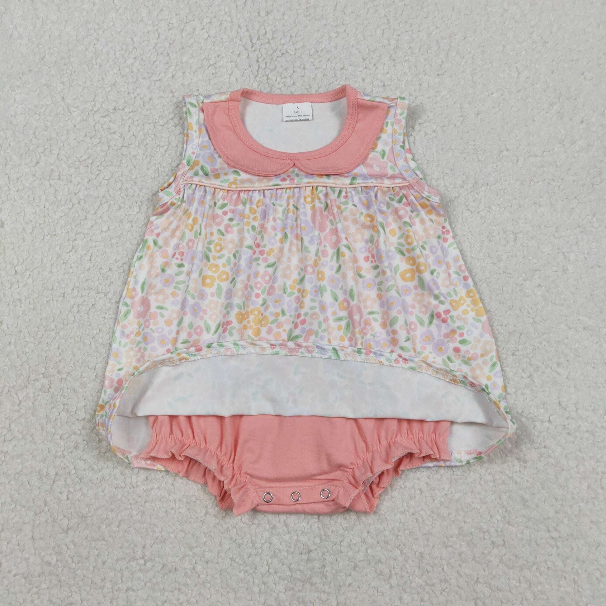 Baby Girls Infant Sleeveless Floral Tunic Pink Bummie Romper RTS