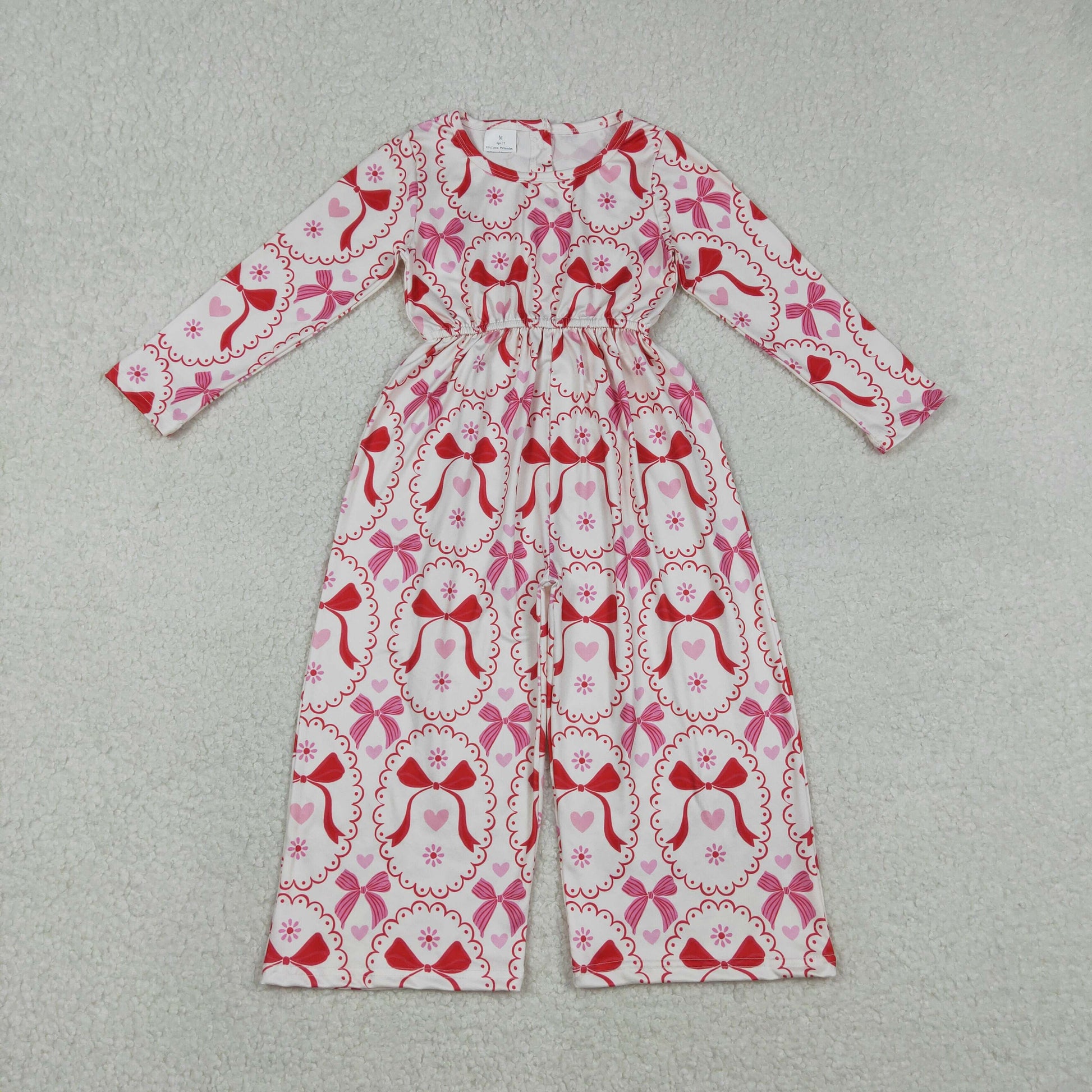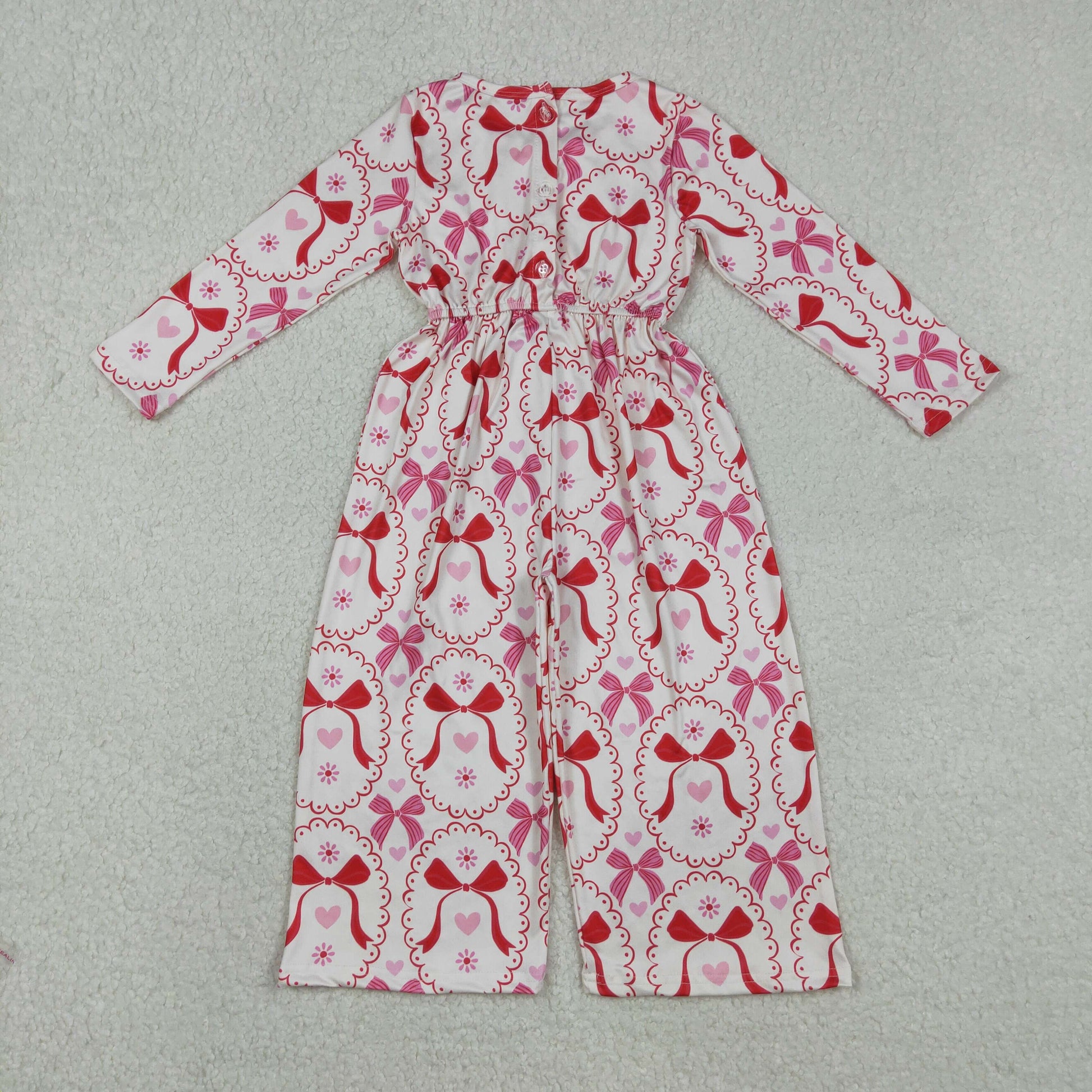Baby Girls Kids Long Sleeves Bows Hearts Valentine's Day Jumpsuit RTS
