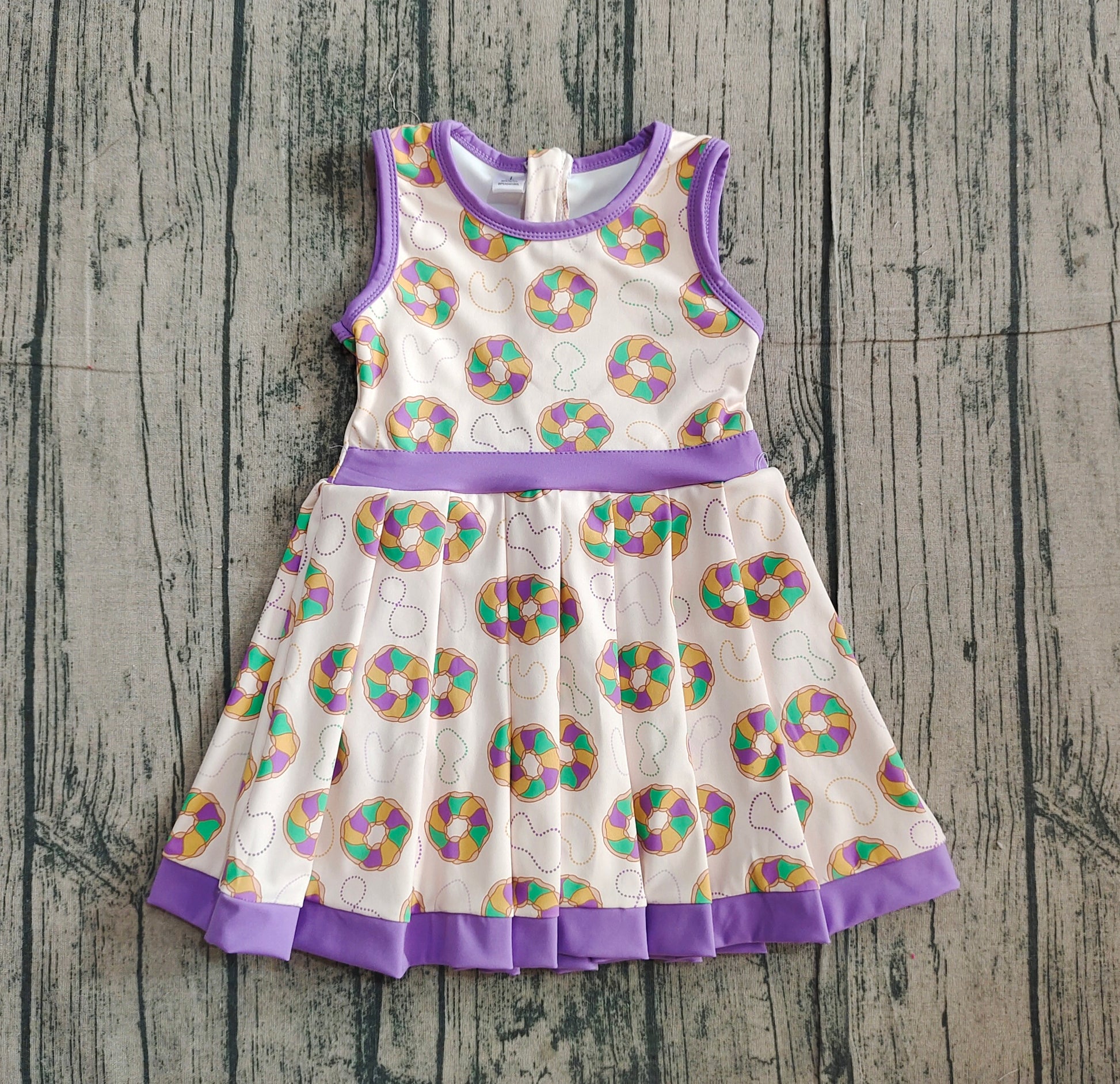Baby Girls Kids Sleeveless Donuts Skort Yoga Active Mardi Gras Dress RTS