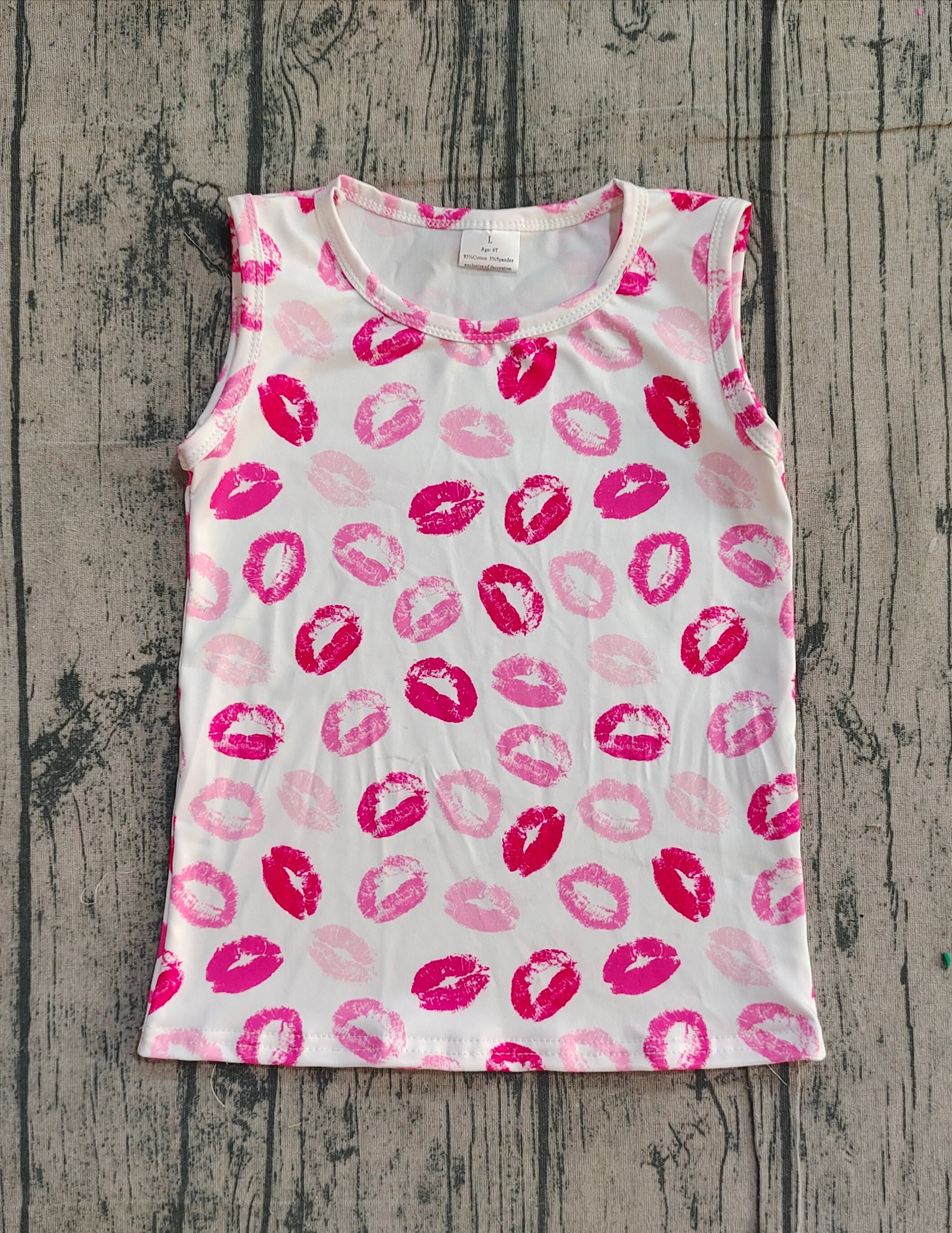 Baby Girls Kids Sleeveless Pink Mouths Valentine Vest Tops RTS