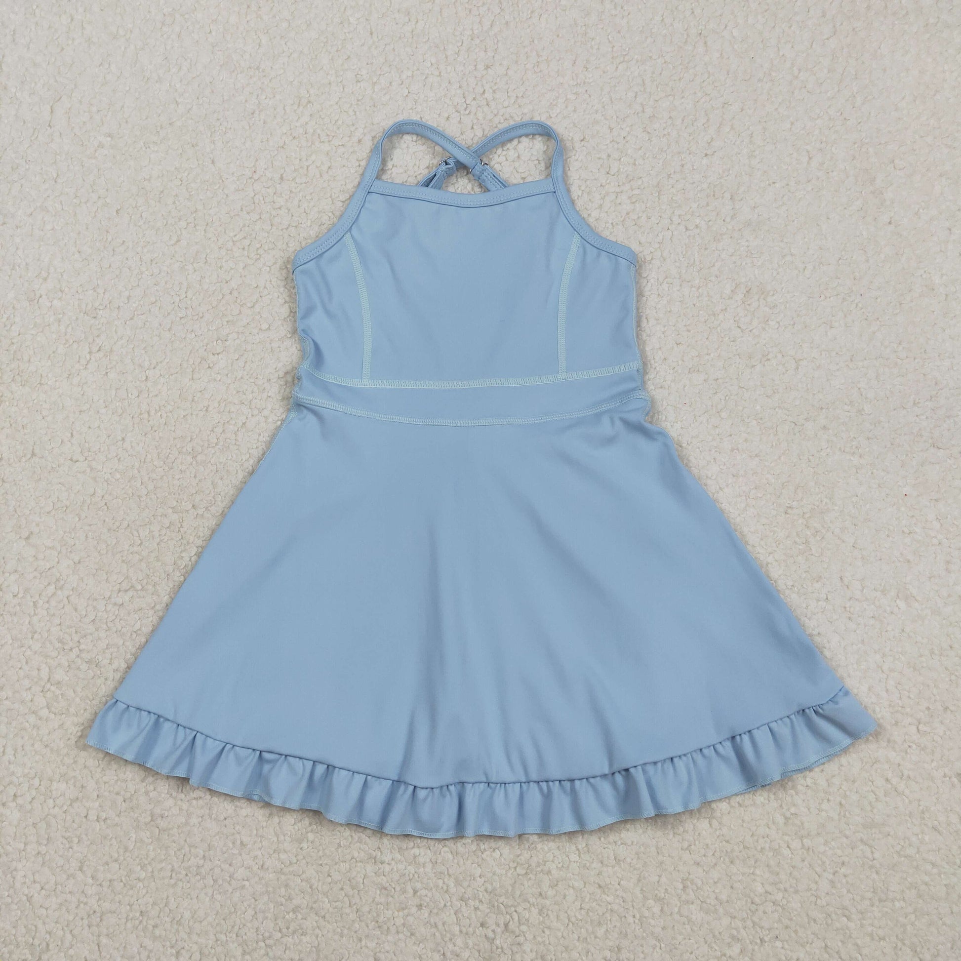 Baby Girls Kids Straps Yoga Active Blue Ruffle Knee Length Dress RTS