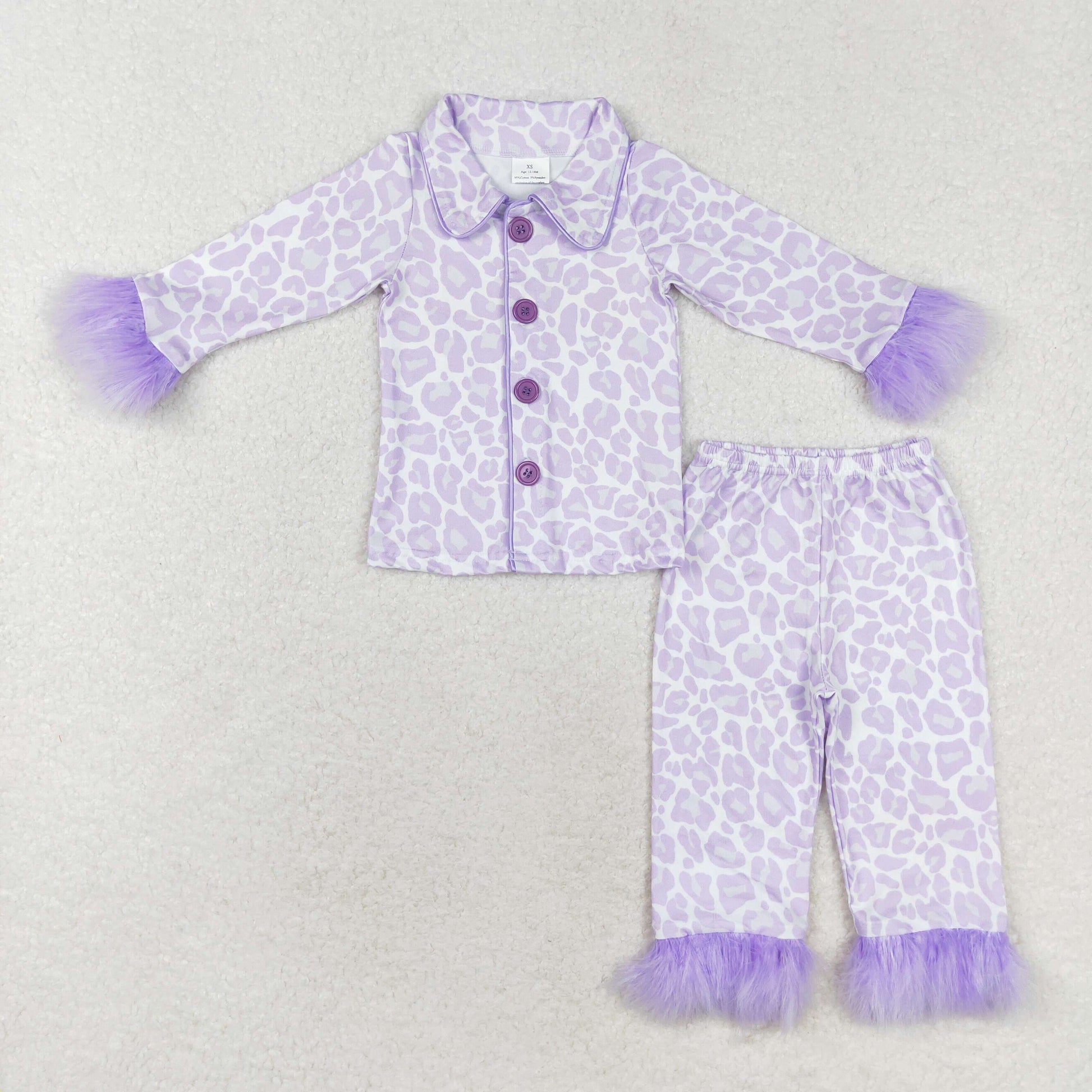 Baby Girls Lavender Leopard Buttons Top Pants Pajamas Clothes Set