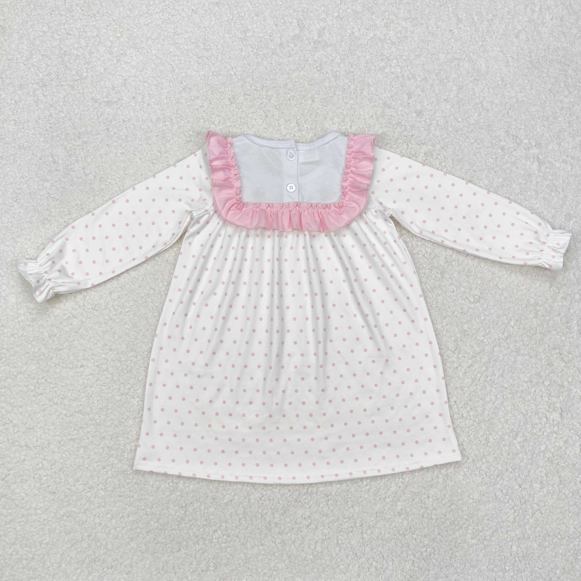 Baby Girls Long Sleeves Embroidery Crosses Easter Knee Length Dots Pink Dress