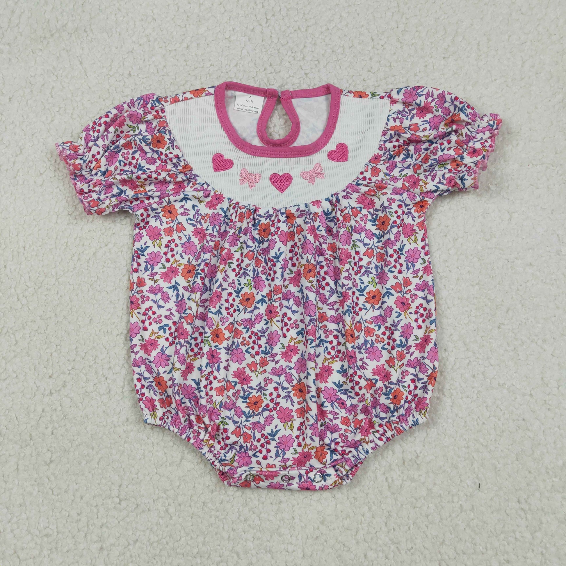 Baby Girls Long Sleeves Embroidery Hearts Bows Valentine Flower Smocked Romper RTS