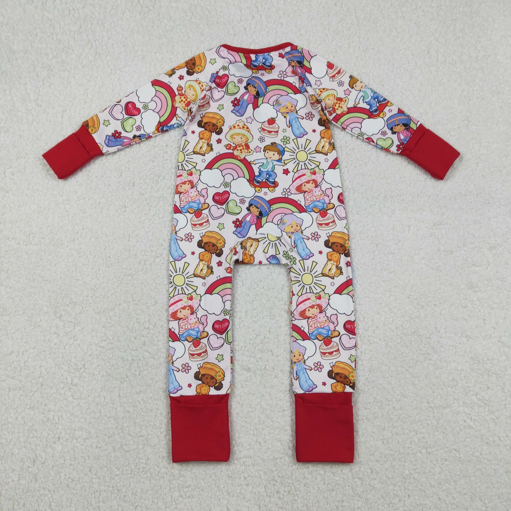 Baby Girls Long Sleeves Hearts Cakes Valentine's Day Zipper Sleeper Romper RTS