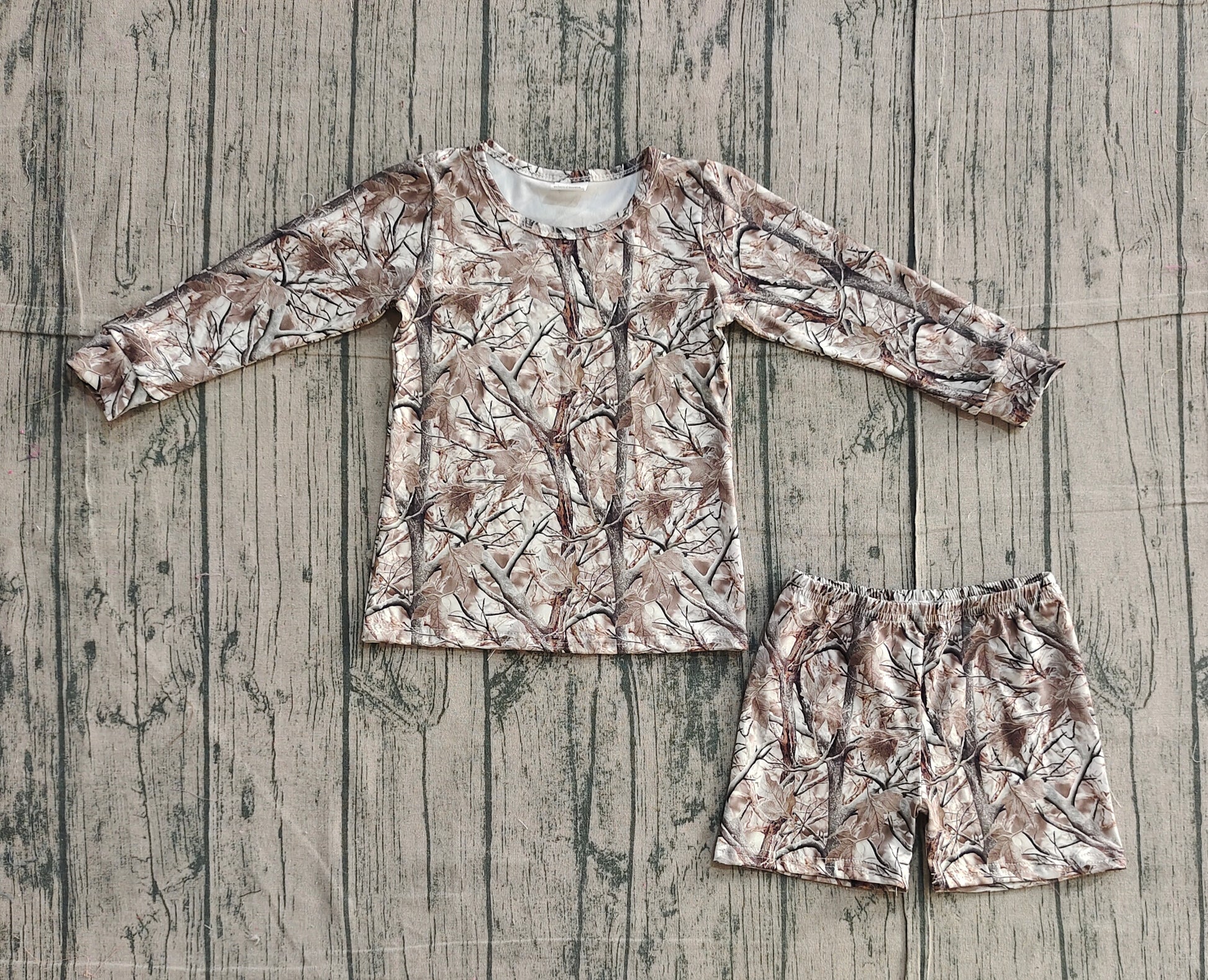 Baby Girls Long Sleeves Leaves Shirt Pockets Shorts Camo Clothes Set RTS