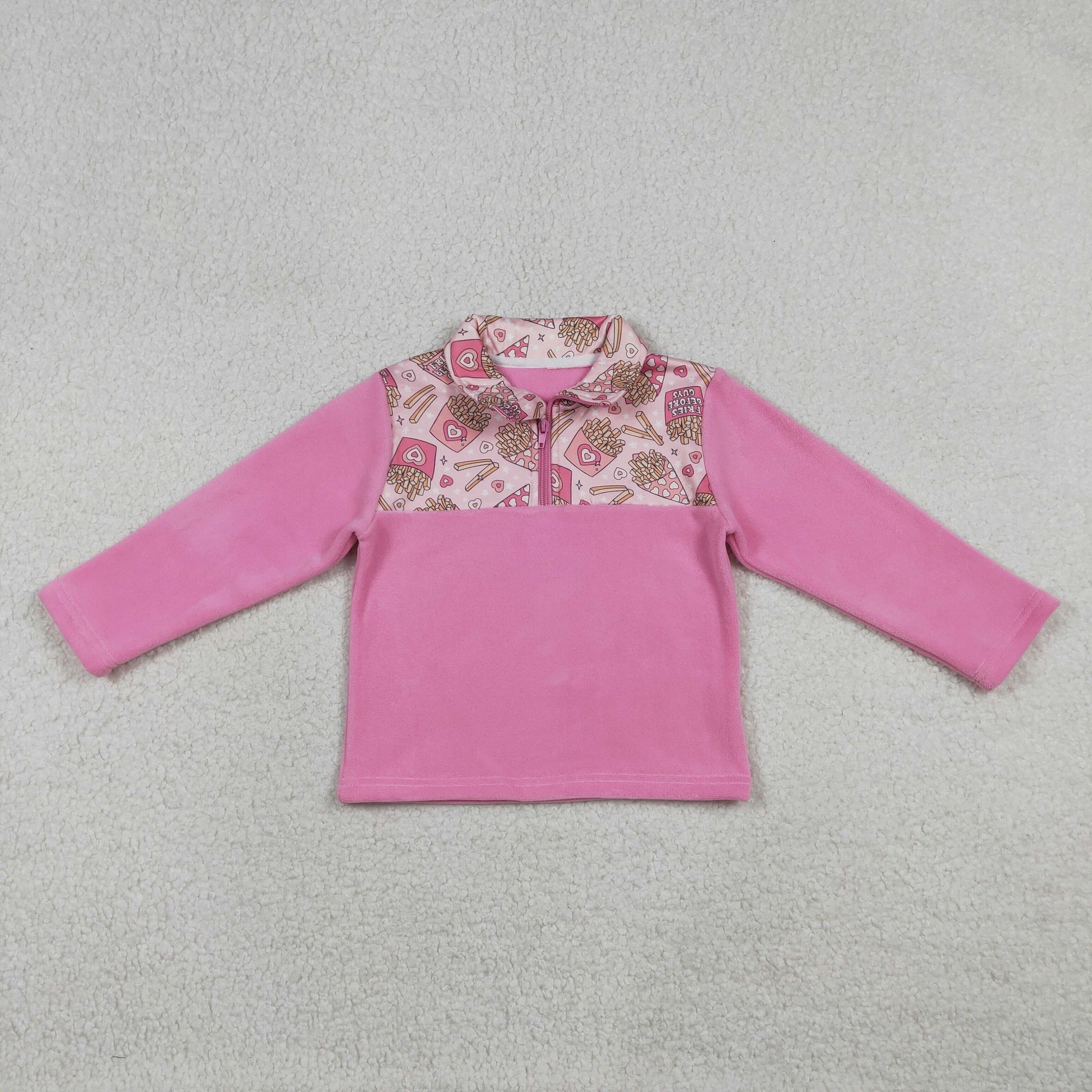 Baby Girls Pink Long Sleeves Chip Hearts Valentines Zipper Fleece Pullover Sweater RTS