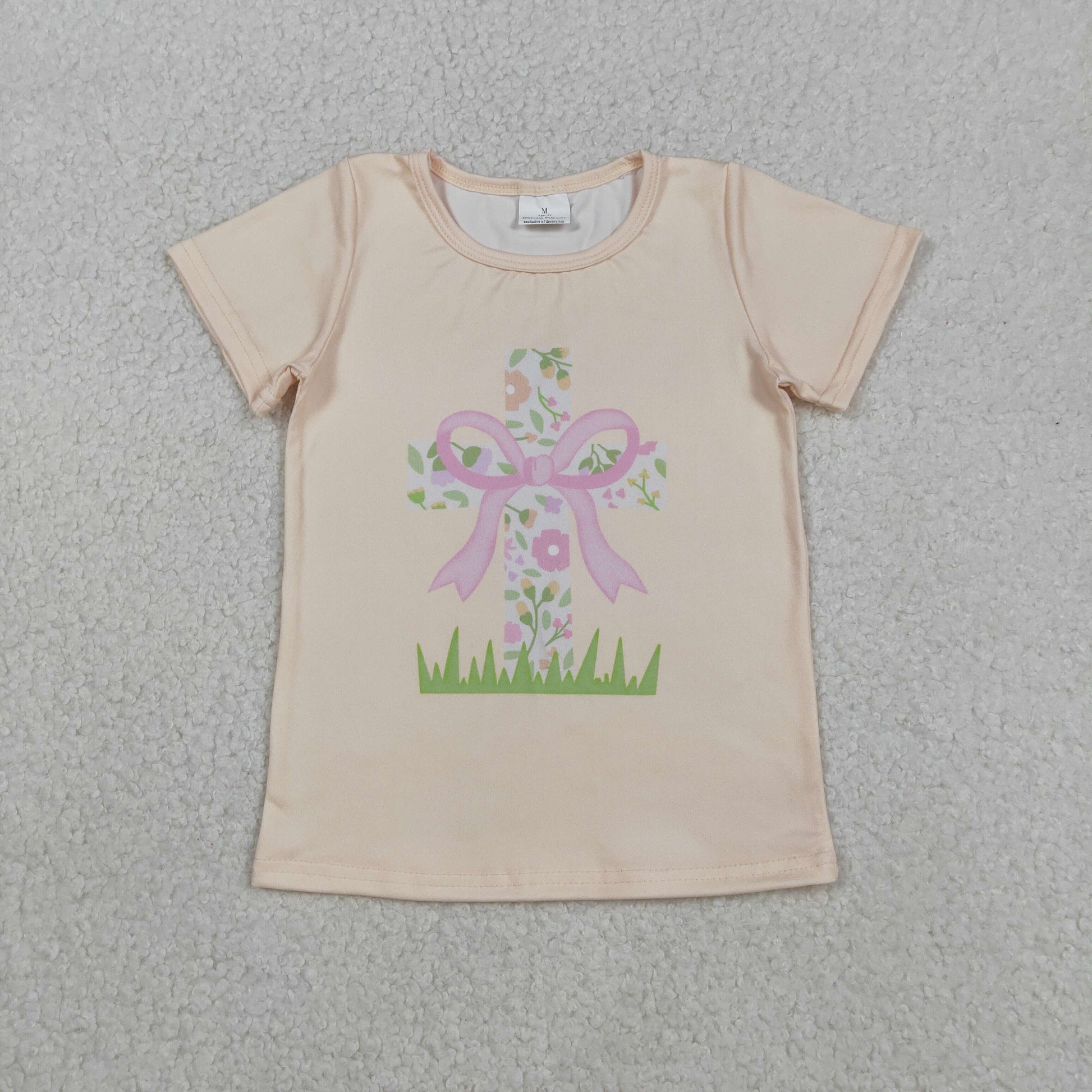 Baby Girls Short Sleeves Flower Cross Easter Yellow Shirt Tops RTS