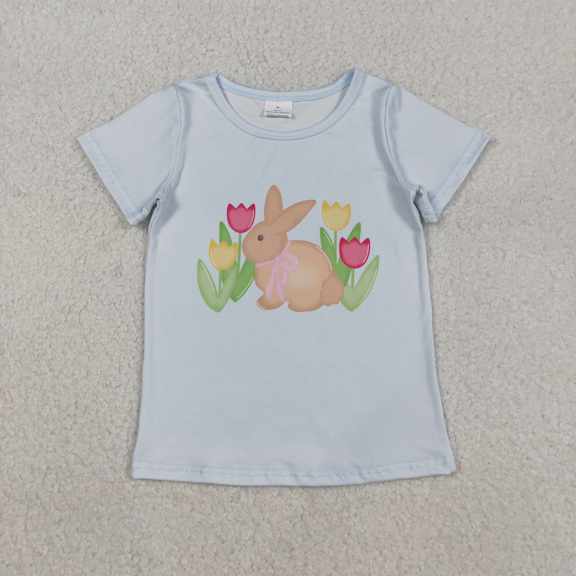 Baby Girls Short Sleeves Flower Rabbit Easter Blue Shirt Tops RTS