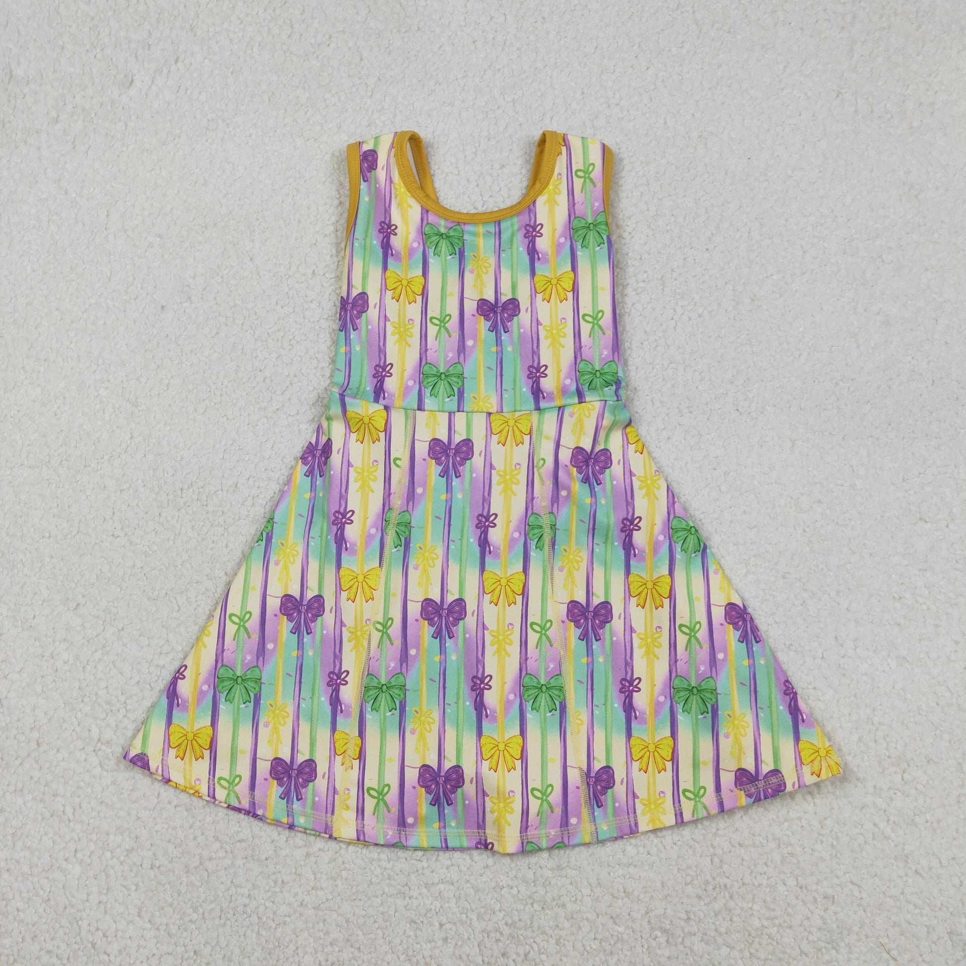 Baby Girls Sleeveless Mardi Gras Bows Stripes Yoga Shorts Knee Length Dress RTS