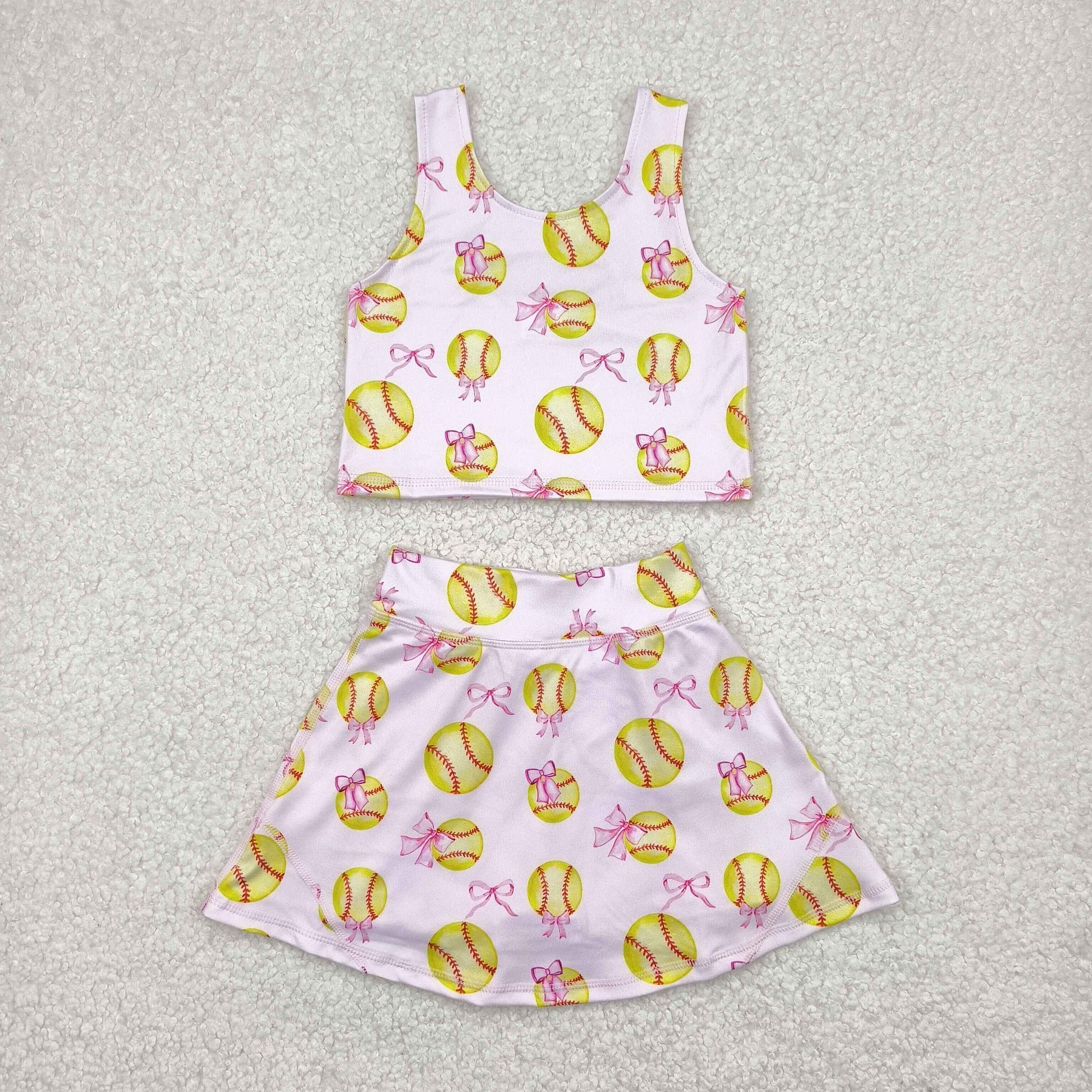 Baby Girl Softball Bows Tops Shorts Skirt Skort Athletic Active Wear Set