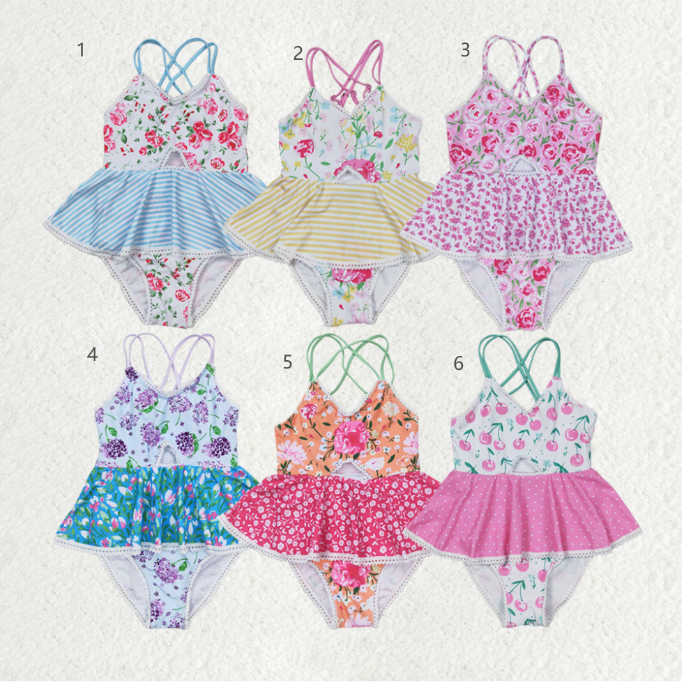 Baby Girl Summer Floral One Piece Sibling Sister Swimsuits