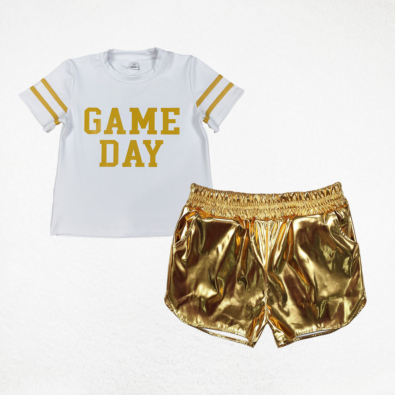 Baby Girl Short Sleeves Game Day Yoga Team Cheer Vinyl Shirt Leather Shorts Set RTS