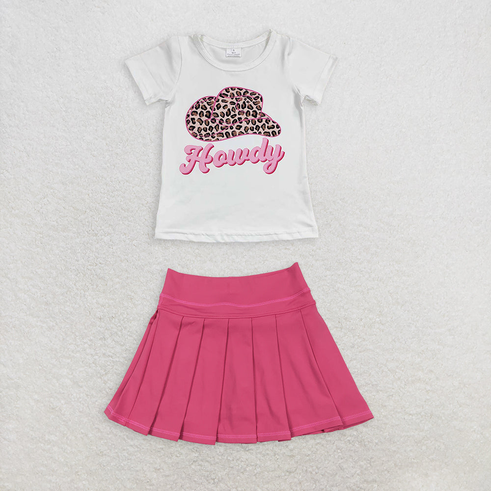 Baby Girl Short Sleeves Hat Western Shirt Pink Pleated Skorts Yoga Active Set RTS