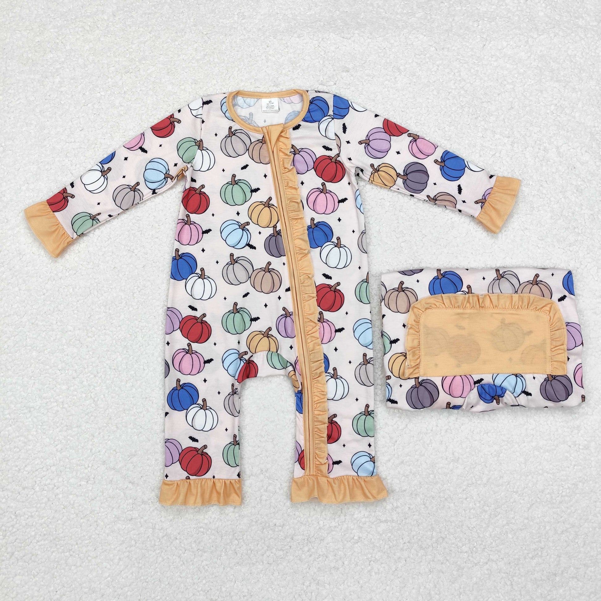 Baby Girl Long Sleeves Colorful Pumpkins Fall Zipper Bamboo Romper