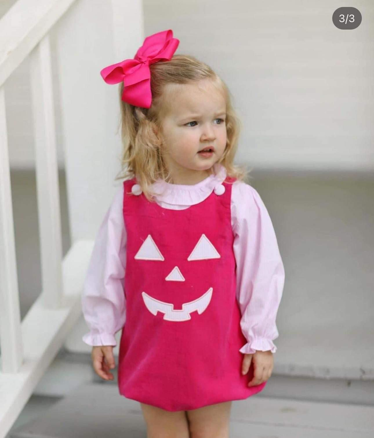Baby Girl Pink Halloween Ghost Face Shirt Embroidery Romper