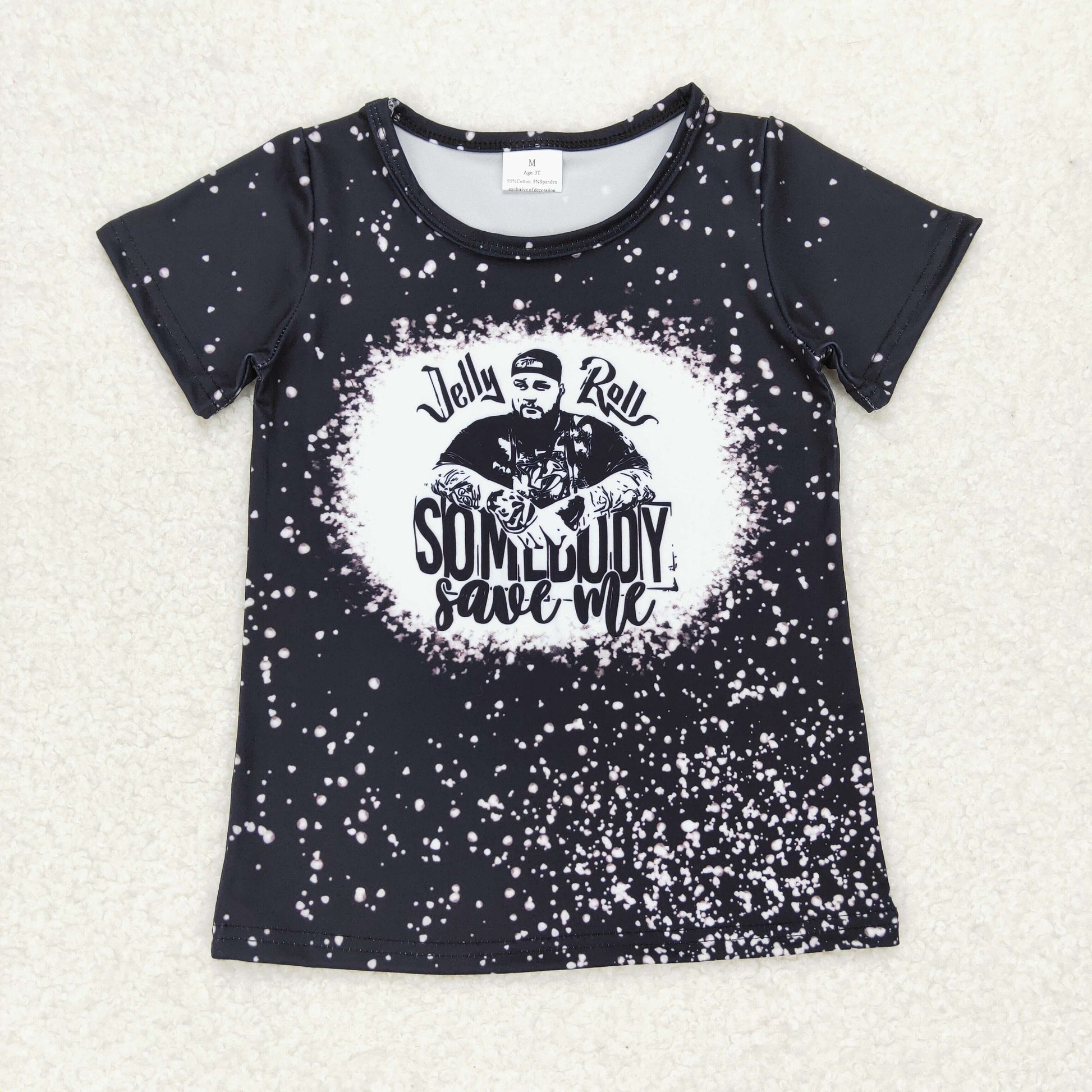 Baby Kids Black Short Sleeves Singer Shirt Tops