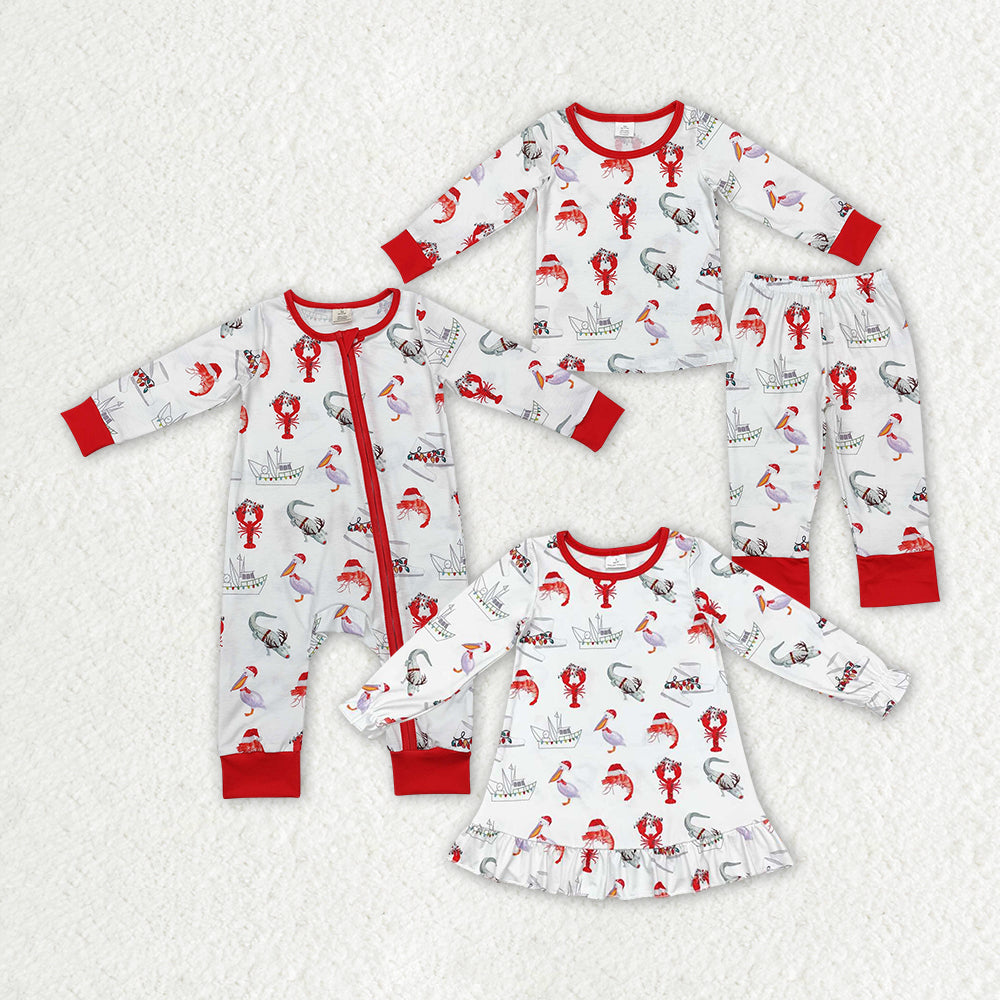 Baby Boy Girl Christmas Crawfish Sibling Romper Dress Clothes Set