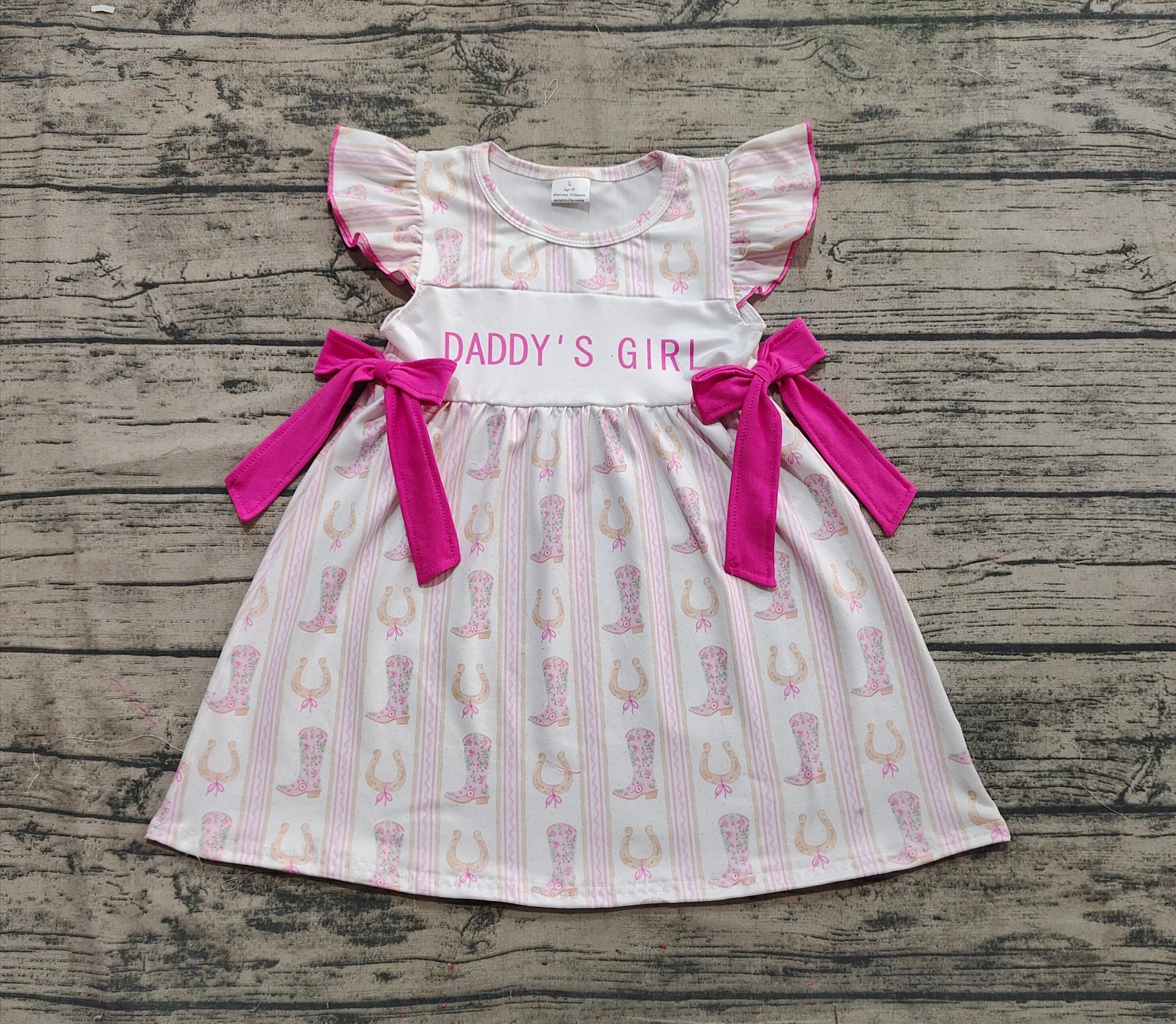 Baby Kids Western Boots Daddy's Girl Bows Knee Length Dress RTS