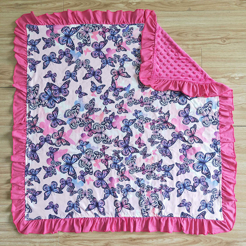 BL0001 Butterfly Baby Girl Rose Red Blanket
