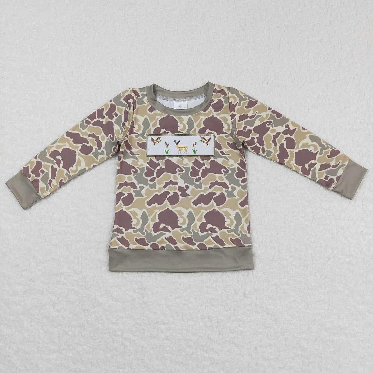 BLP0368 Baby Boy Long Sleeves Embroidery Ducks Reindeer Camo Pants Hunting Outfit