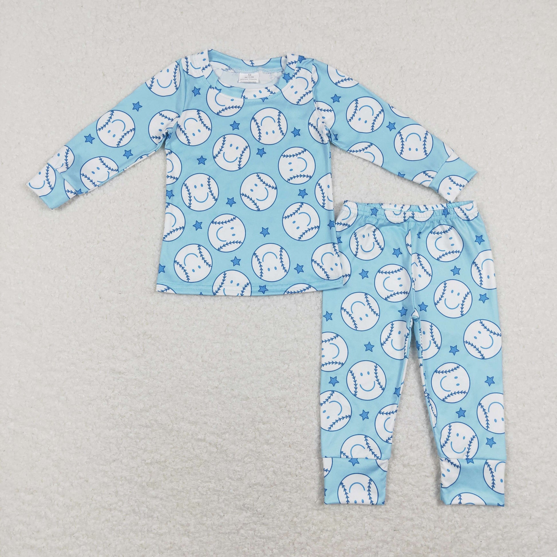 BLP0424 Baby Boy Long Sleeves Baseball Smile Shirt Pants Set Blue Pajamas