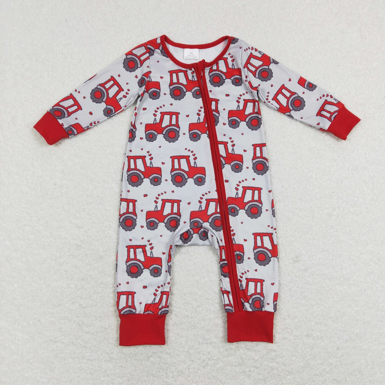 BLP0449 Valentine's Day Baby Kids Long Sleeves Hearts Tractor Shirt Bell Pants Set Pajamas