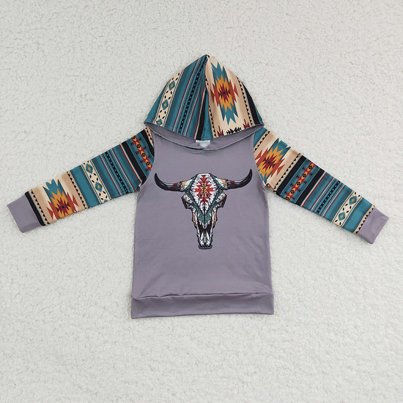 BT0130 Baby Boy Kids Bull skull Western Cow Hoodie Shirt